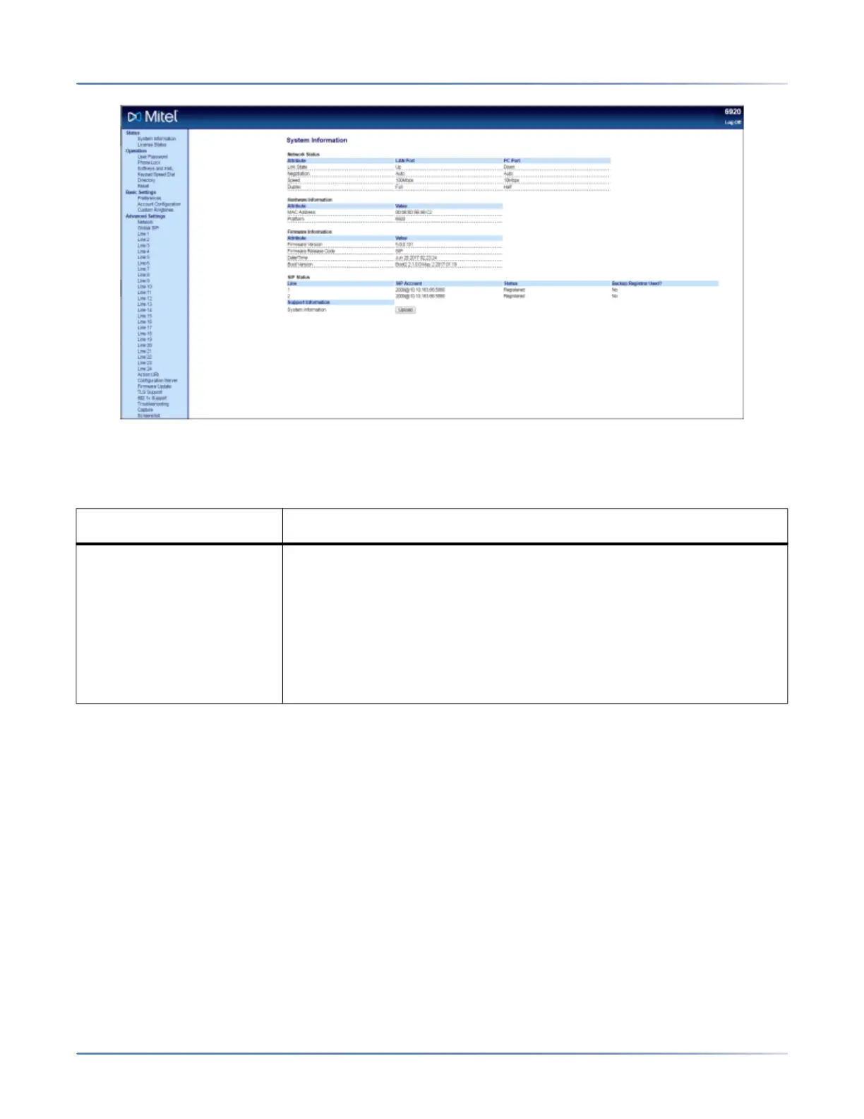 The following categories display in the side menu of the Mitel Web UI: Status, Operation, and Basic