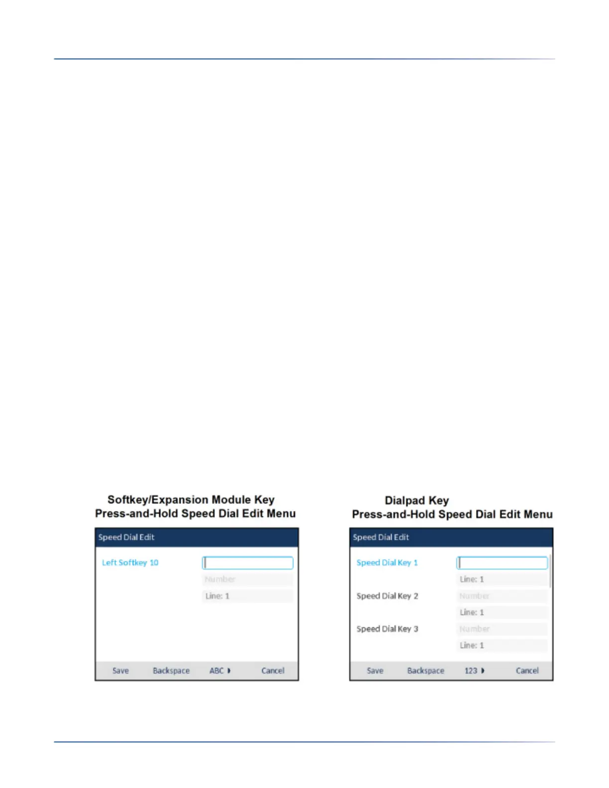 Pressing and holding down a softkey, dialpad key, or expansion module key on the phone initiates a