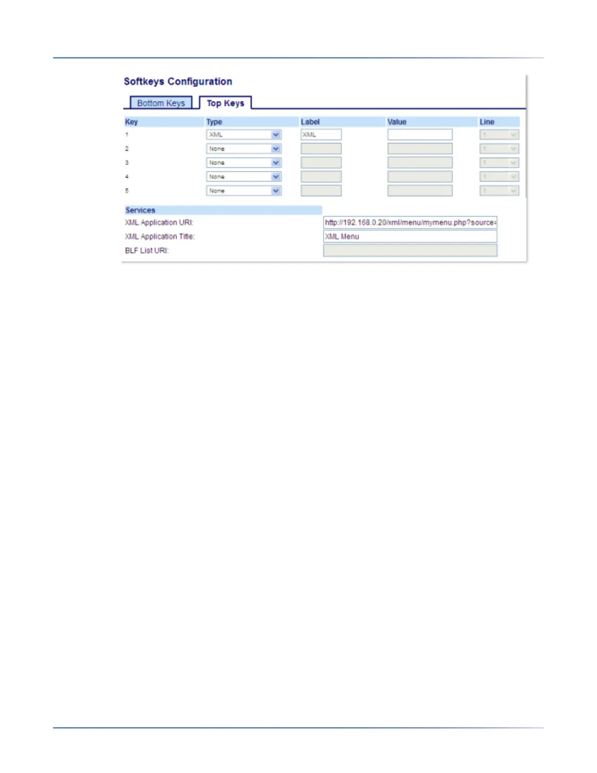 1. Press the XML softkey on the 6920 phone. An XML screen displays.