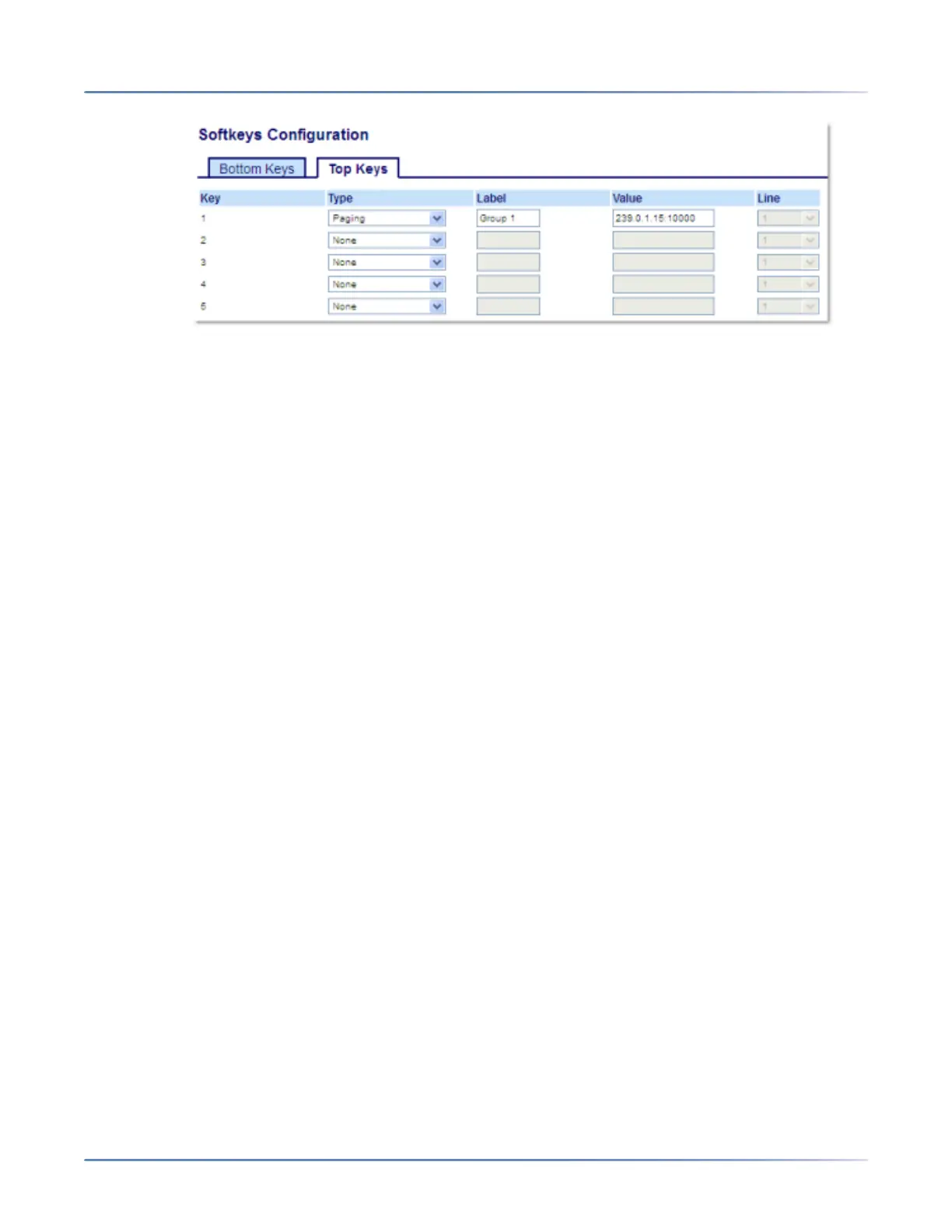 9. In the Value field, enter a multicast IP address and a port number for the Paging key. When you press