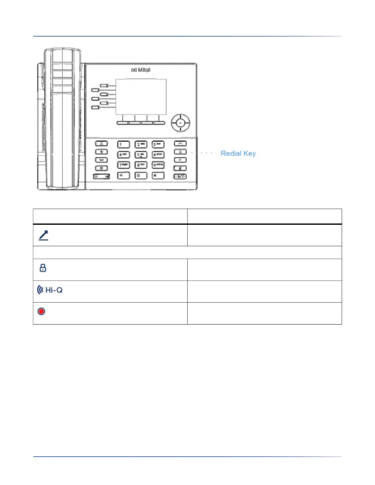 The following table identifies and describes the various icons displayed in the Outgoing Redial List.