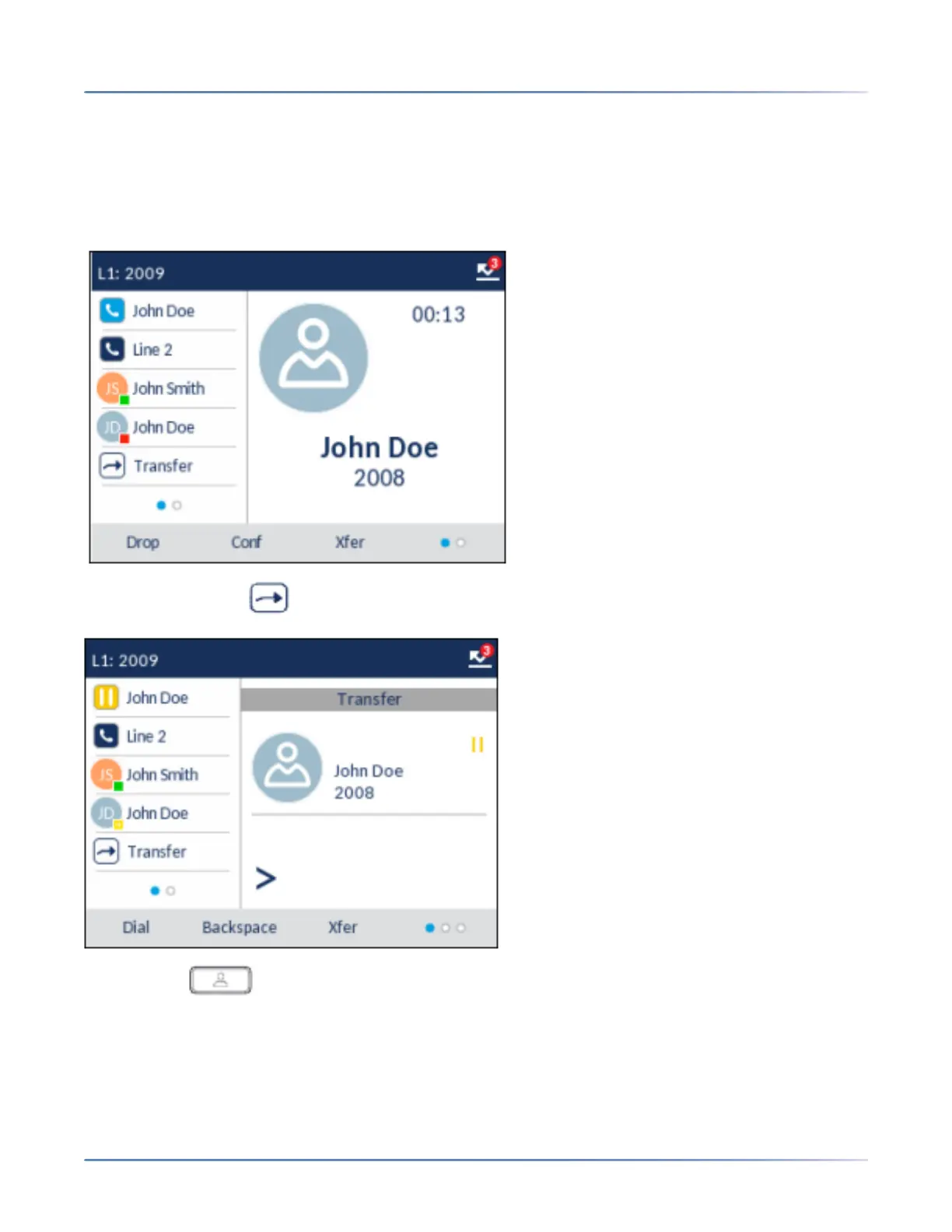 transfer, they can navigate to the Directory screen and use the Xfer softkey to complete a blind or consul-
