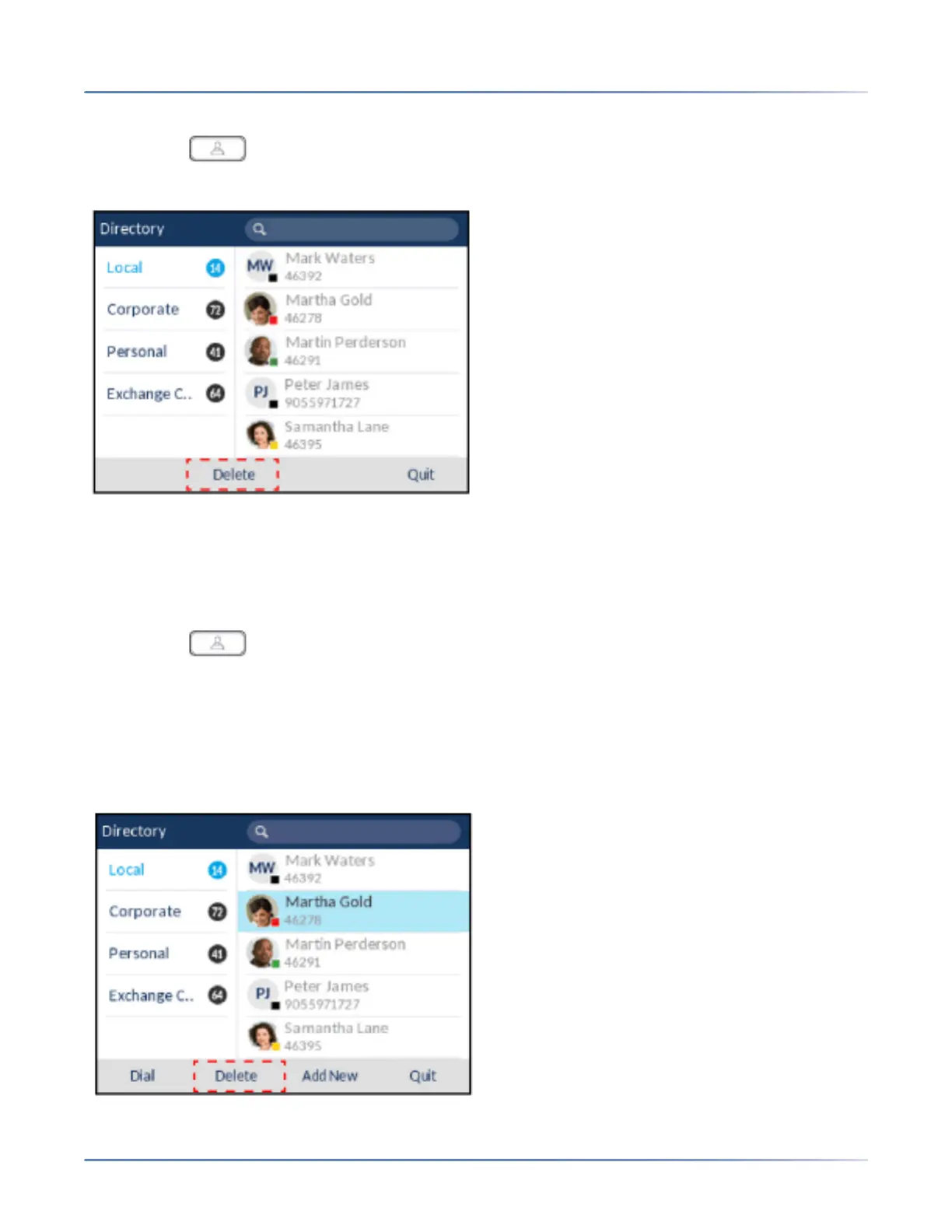 3. Navigate to the Local Directory contact column and use the up and down navigation keys to highlight