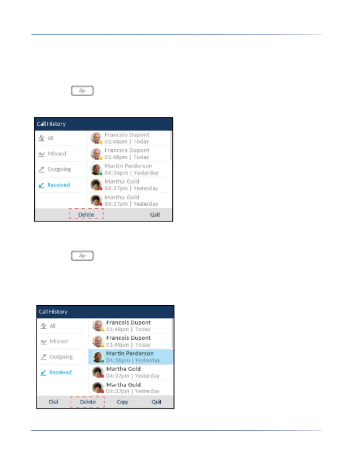 3. Use the up and down navigation keys to scroll through the entries in the Received Callers List.