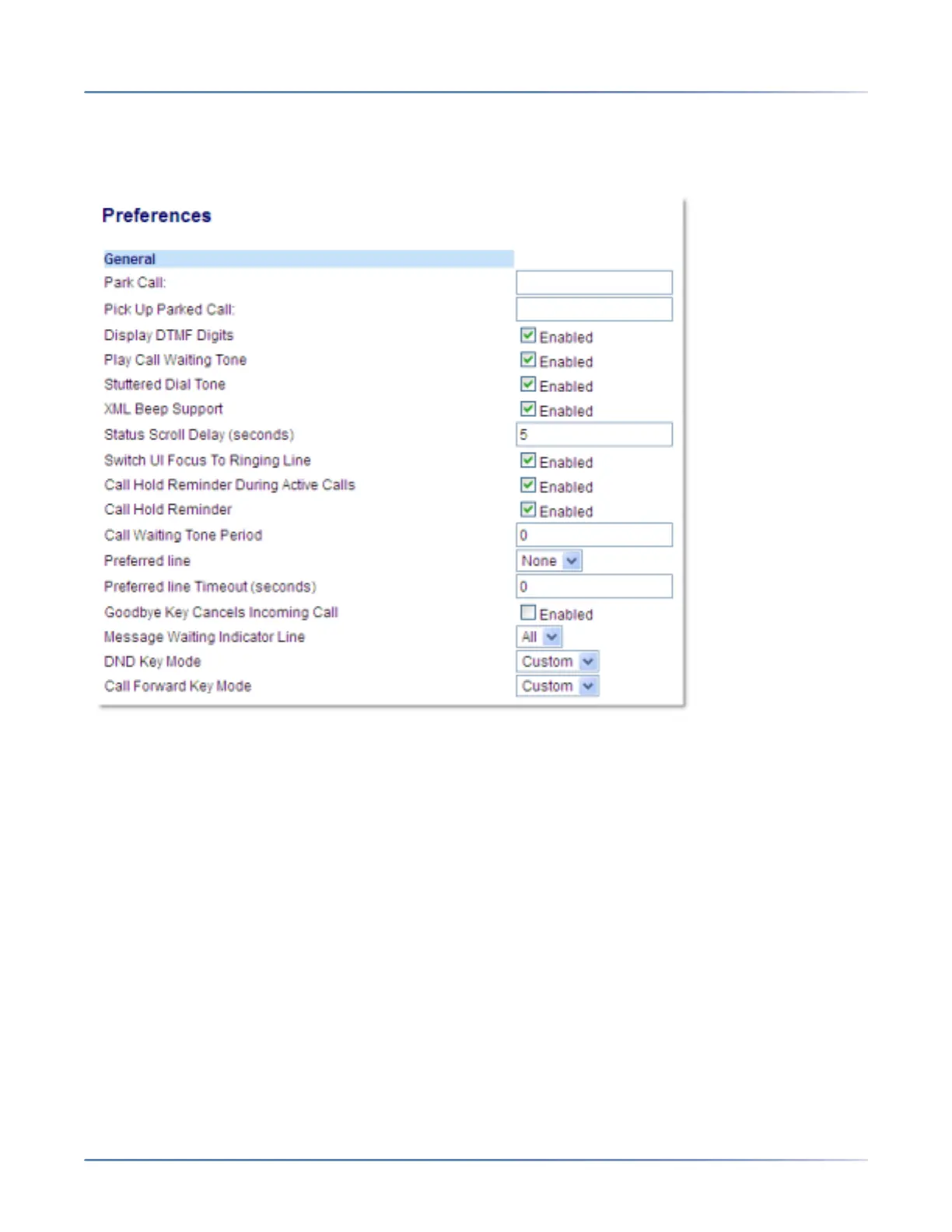 2. The Call Hold Reminder During Active Calls field is disabled by default. To enabled this field, check