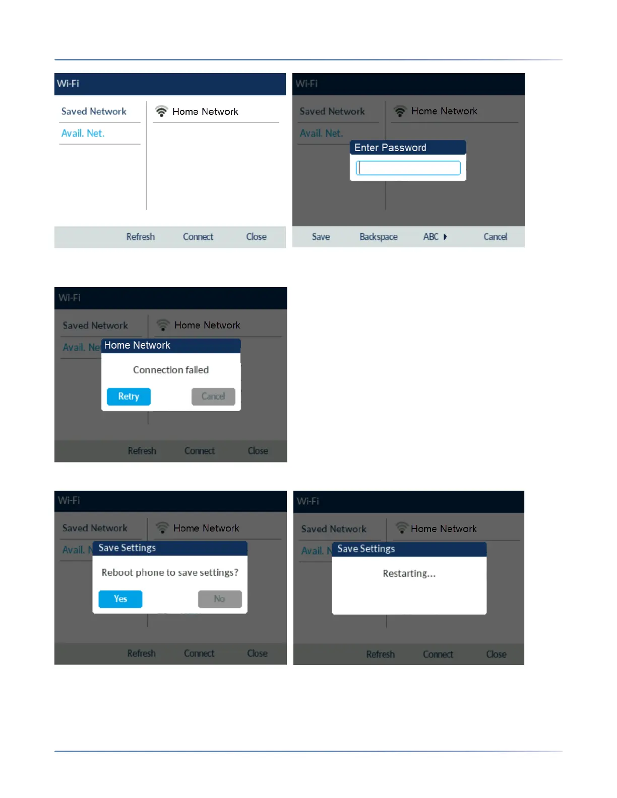 NOTE: After the phone restarts the LAN and PC ports are disabled (as it relates to network commu-