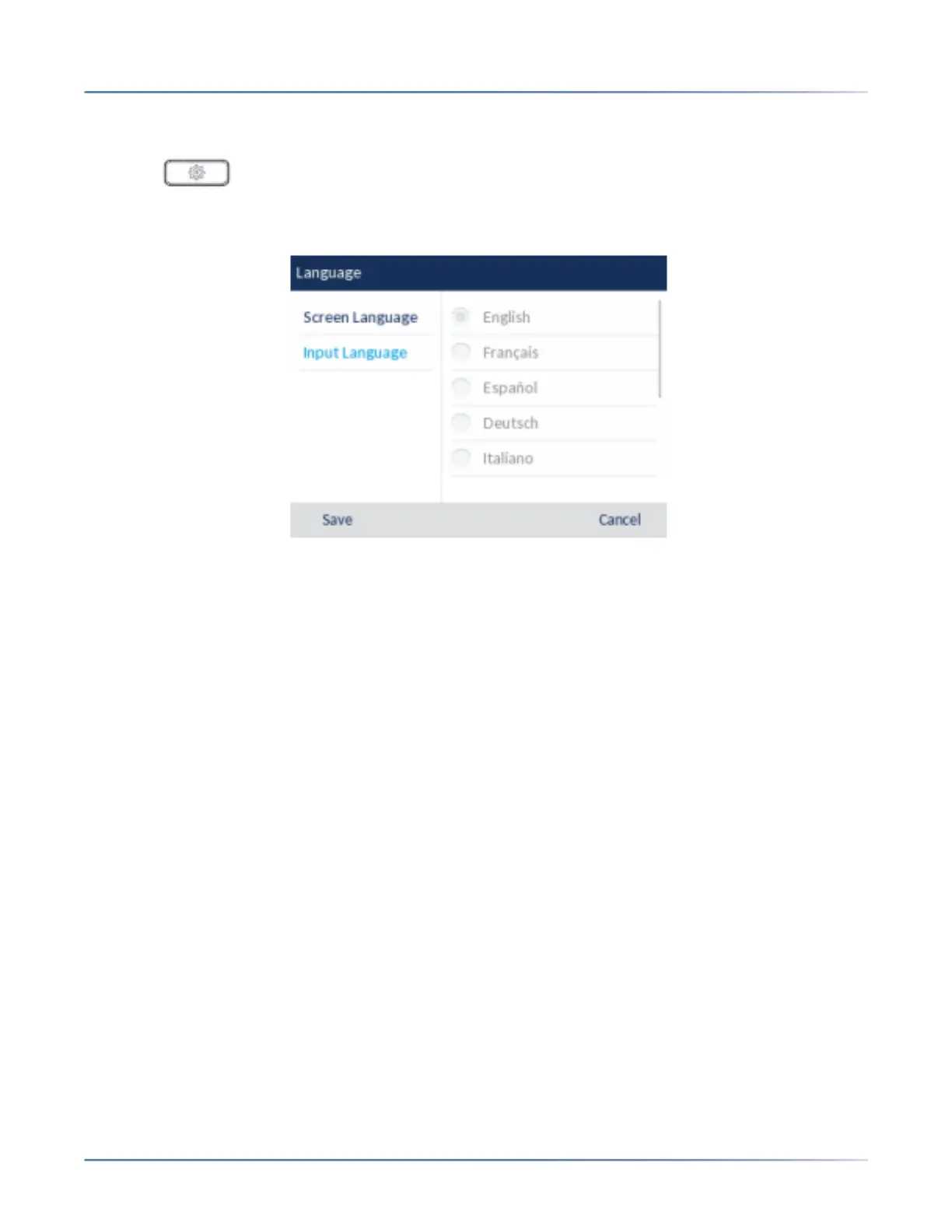 2. Navigate to the Language option and press the Select button or Select softkey.