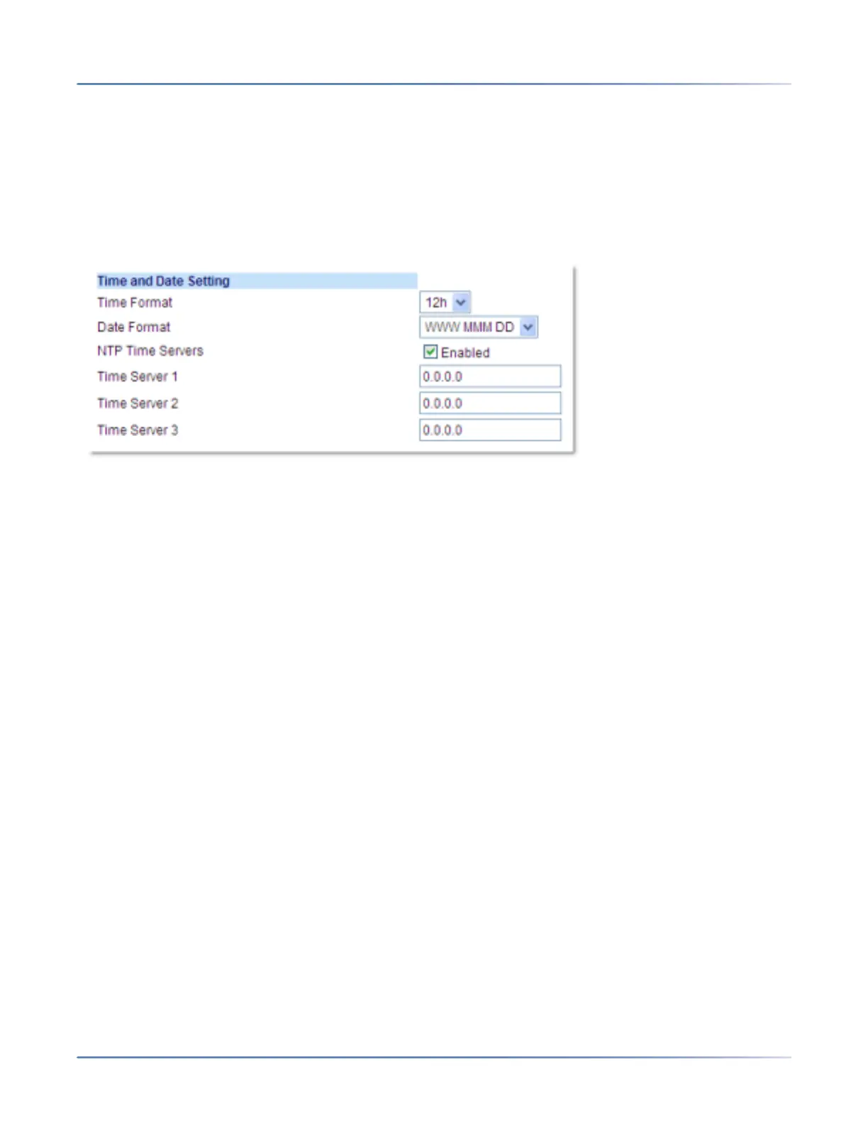 5. In the Time Server 1, Time Server 2, and Time Server 3fields, enter IP addresses or qualified