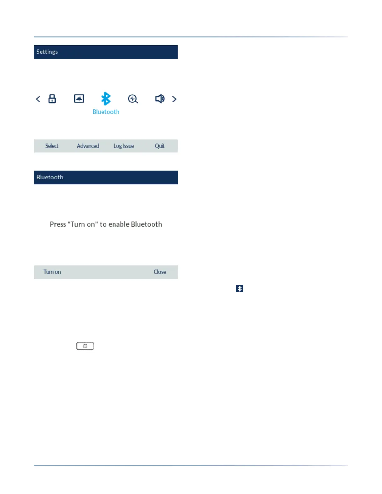 2. Navigate to the Bluetooth setting and press the Select button or Select softkey.