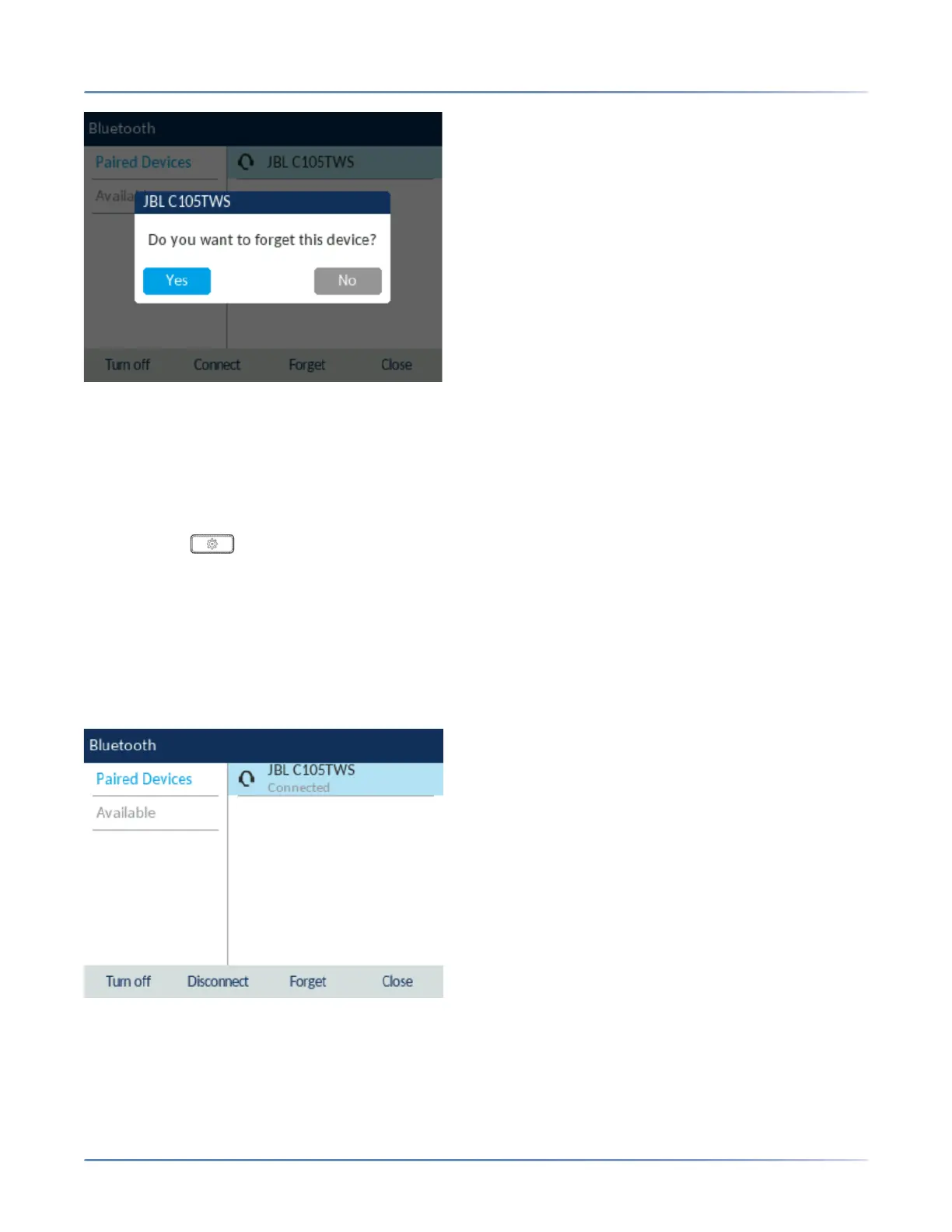 6. Press Yes to forget the Bluetooth device.The Bluetooth device is removed from the list of Paired