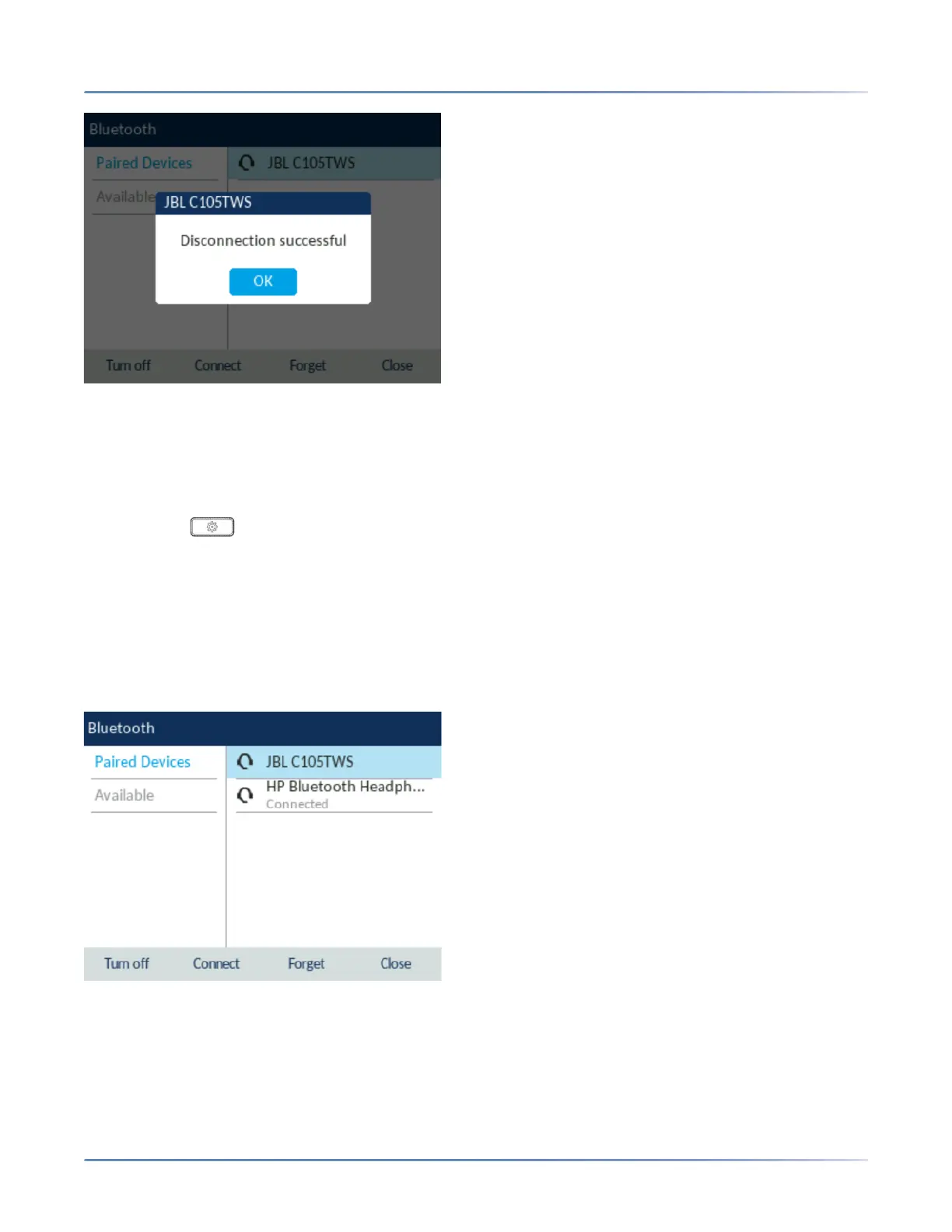 6. Press the OK button to acknowledge the successful connection.The connected Bluetooth device is