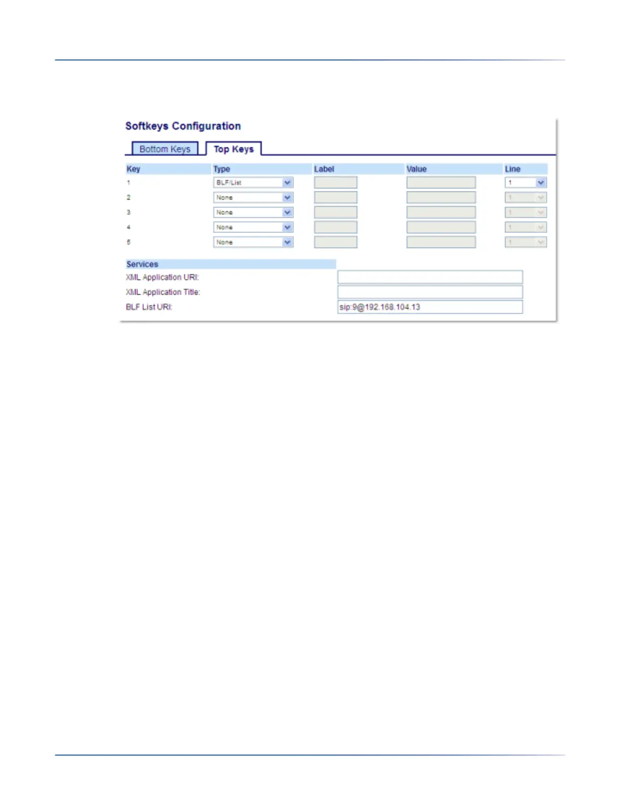 NOTE: TheValuefield is not required. The BLF/List name is configured in the BLF List URIfield