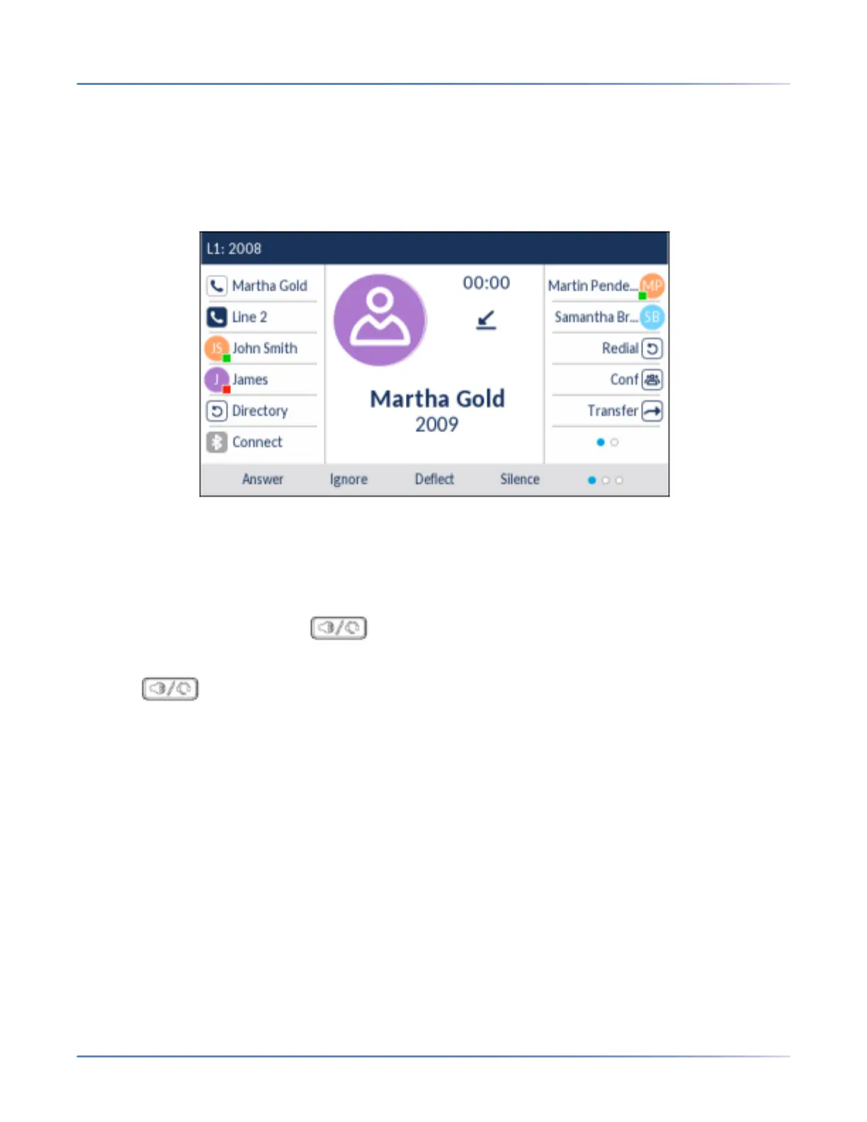 • For handsfree operation, press , the Answersoftkey, or the line/call appearance button for the