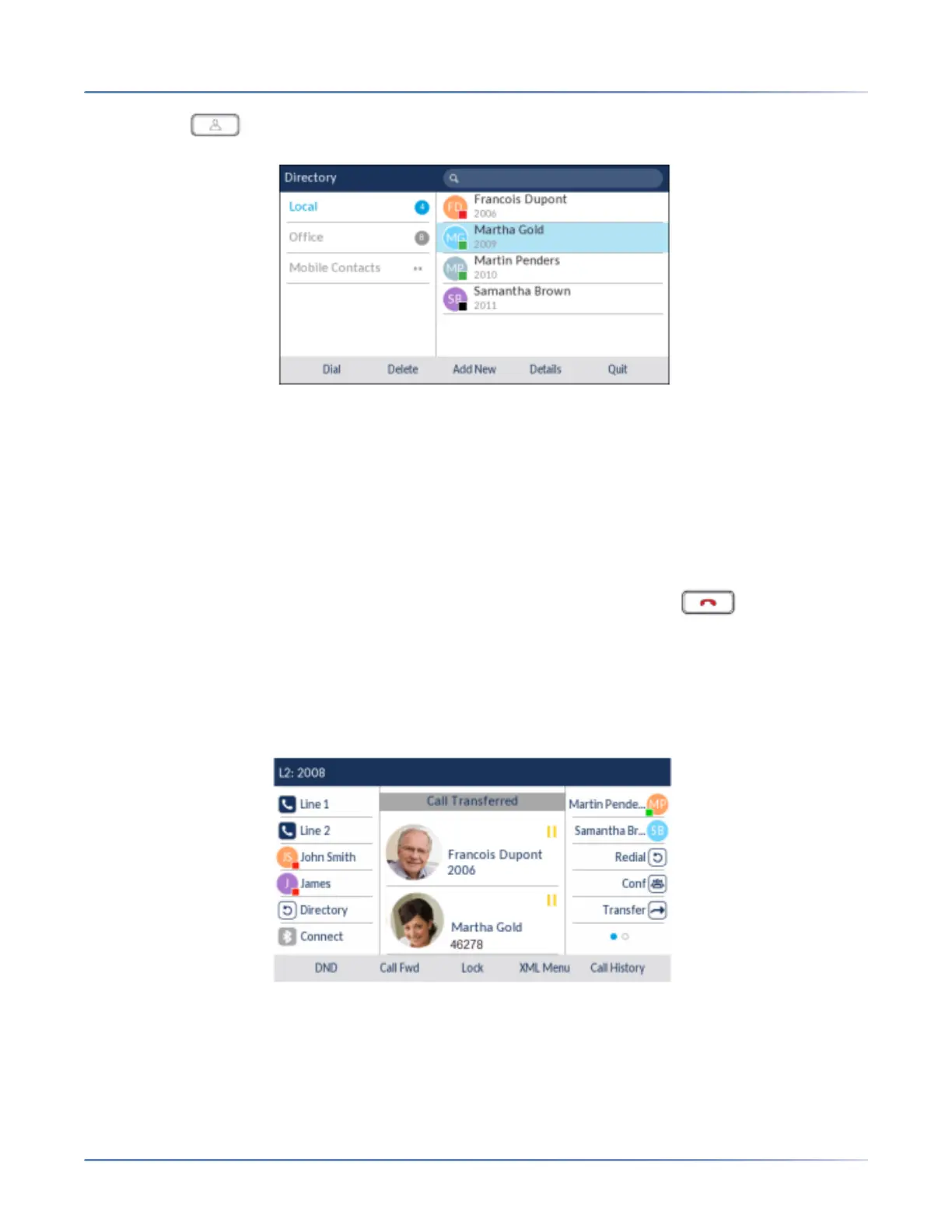 When you transfer an active call, the near-end phone displays a Call Transferredscreen when a call is