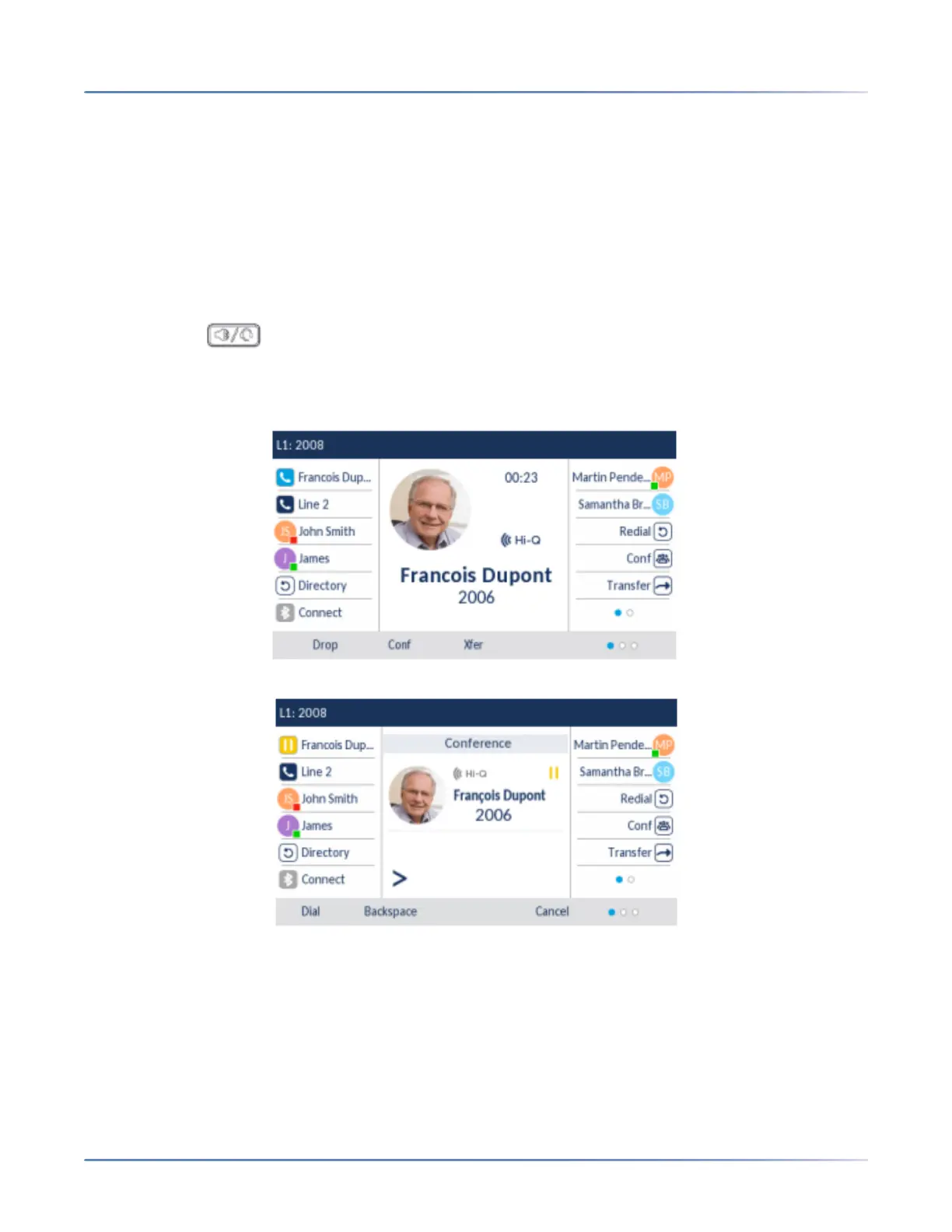 NOTE: Your System Administrator can set your Conference key to speed dial a specific number. Contact