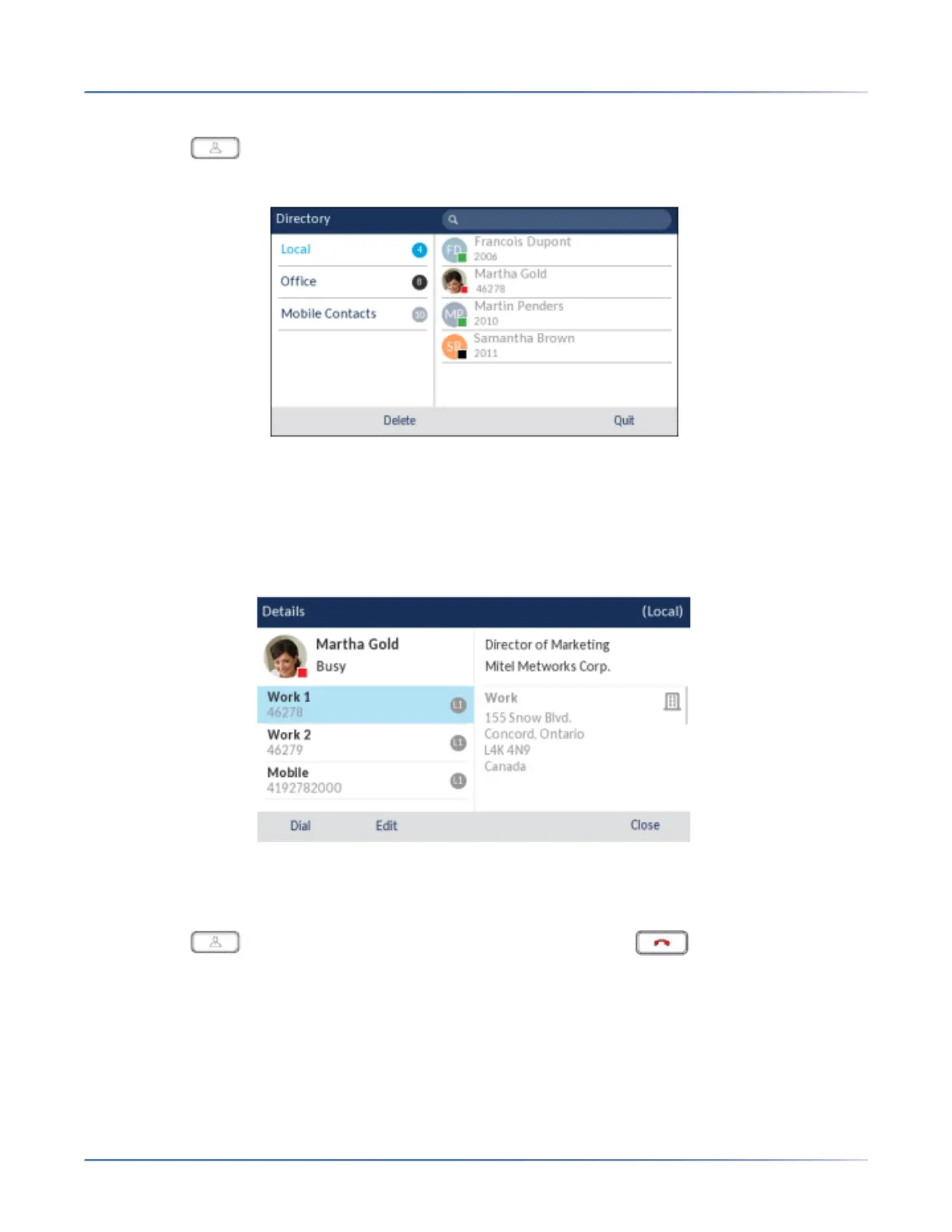 1. Press the (Directory) key or softkey configured with Directory functionality. If additional