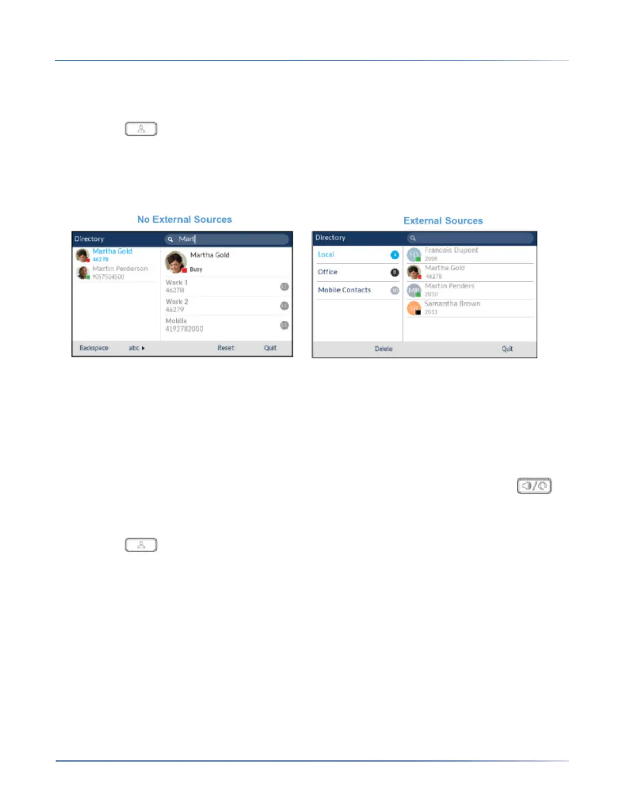 1. Press the key or softkey configured with Directory functionality to enter the Directory.