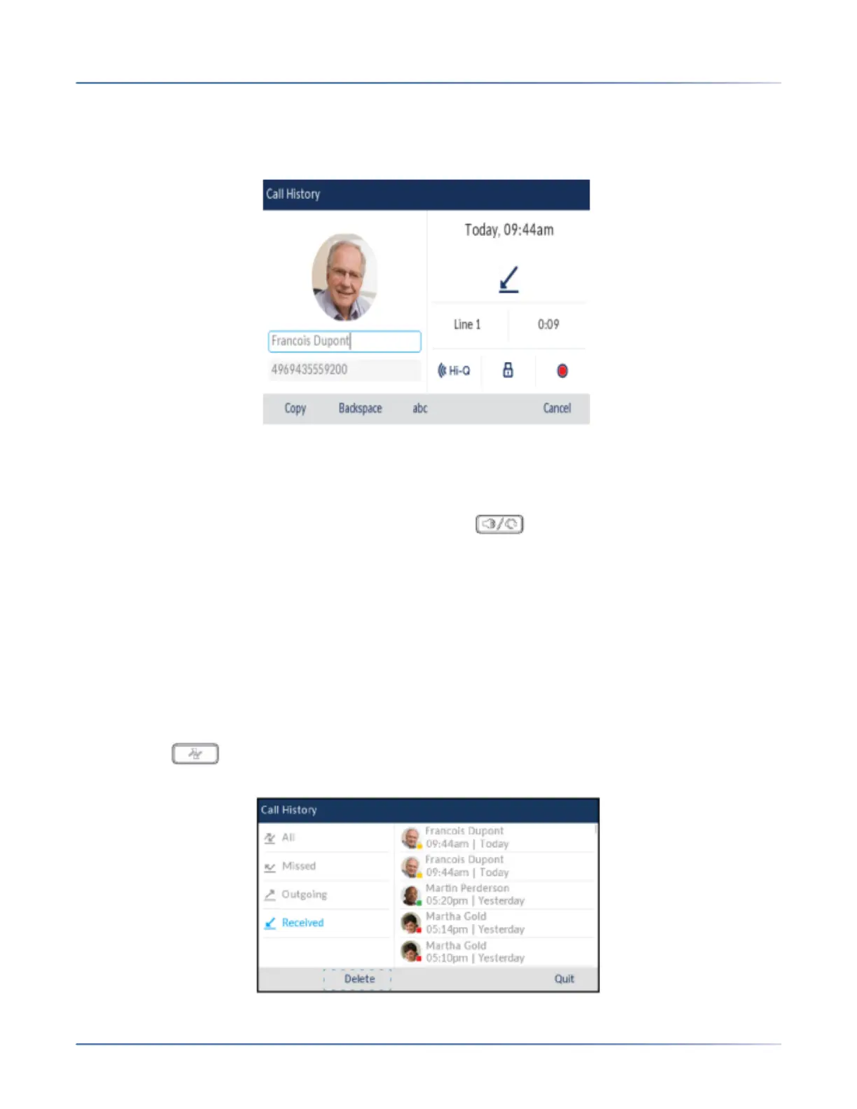 3. Use the up and down navigation keys to scroll through the entries in the Received Callers List.