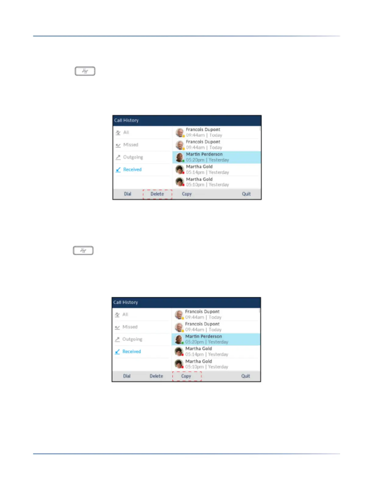3. Press the up and down navigation keys to scroll through and highlight the respective Received Callers