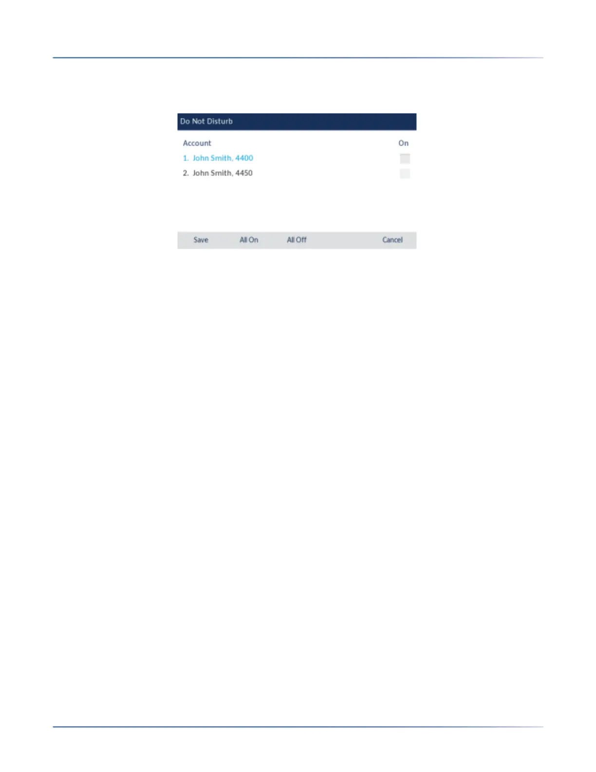 NOTE: Press the All On or All Off softkeys to quickly enable or disable DND for all accounts.