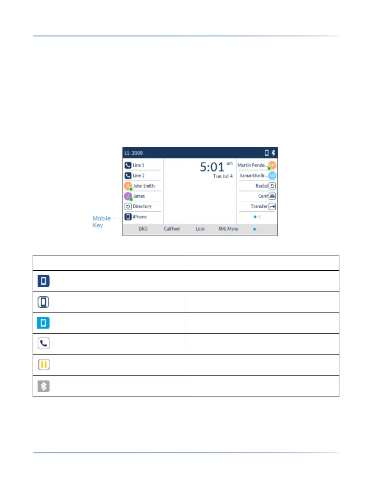 The Mobile Line key icon changes to reflect the status of the line as per the following table.