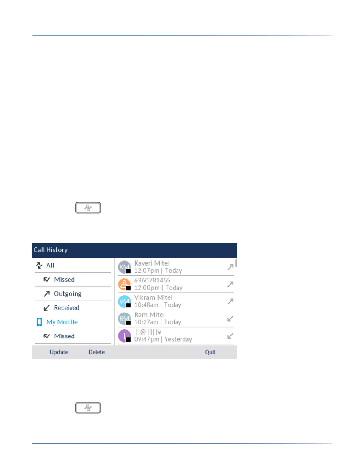 2. Press the ( Call History) key.