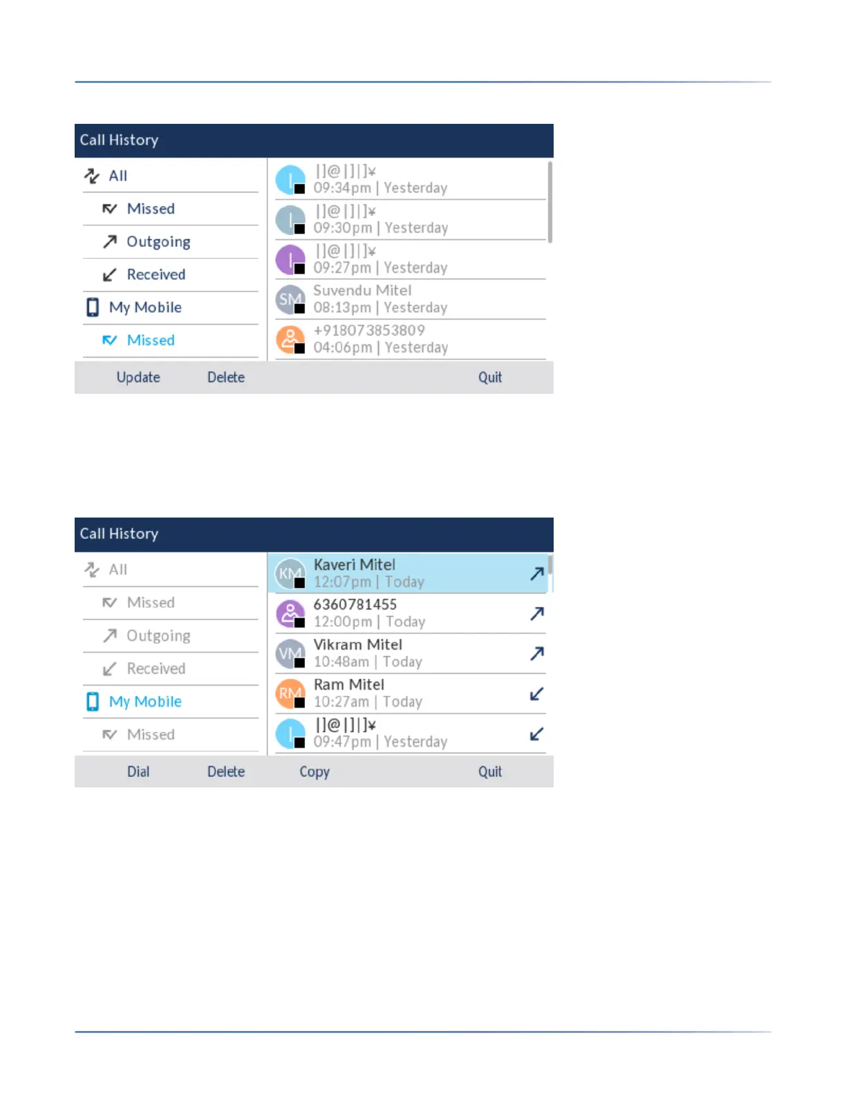 1. Navigate to My Mobile or Missed folder. See Viewing mobile call history or Viewing mobile missed