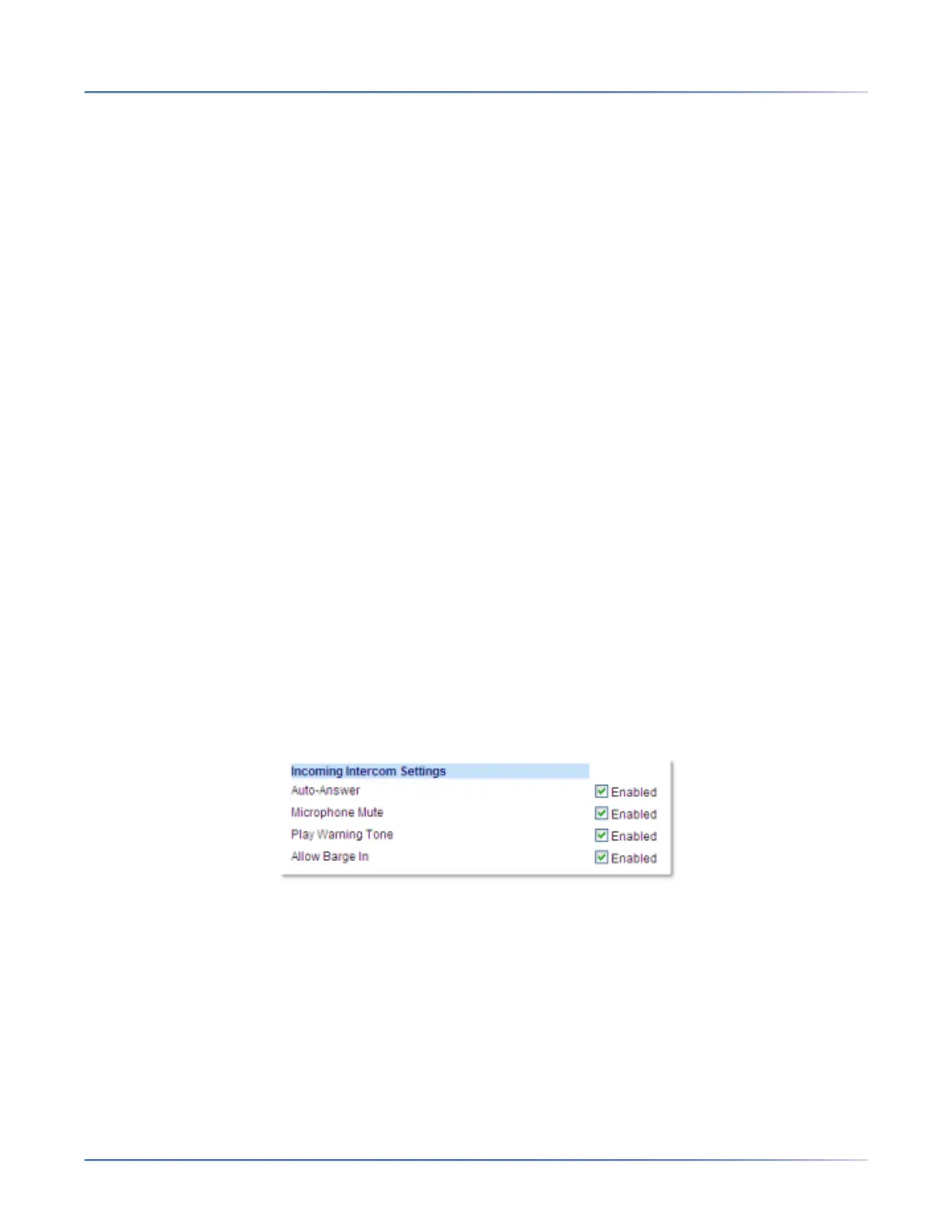 NOTE: If the Auto-Answer field is not checked (disabled), the phone treats the incoming intercom call