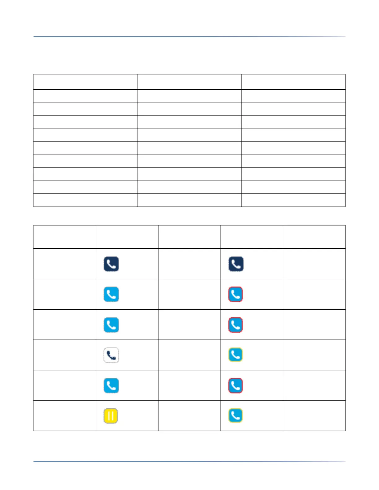 The following tables provide the key states and LED/image behavior in an SCA bridge call for users