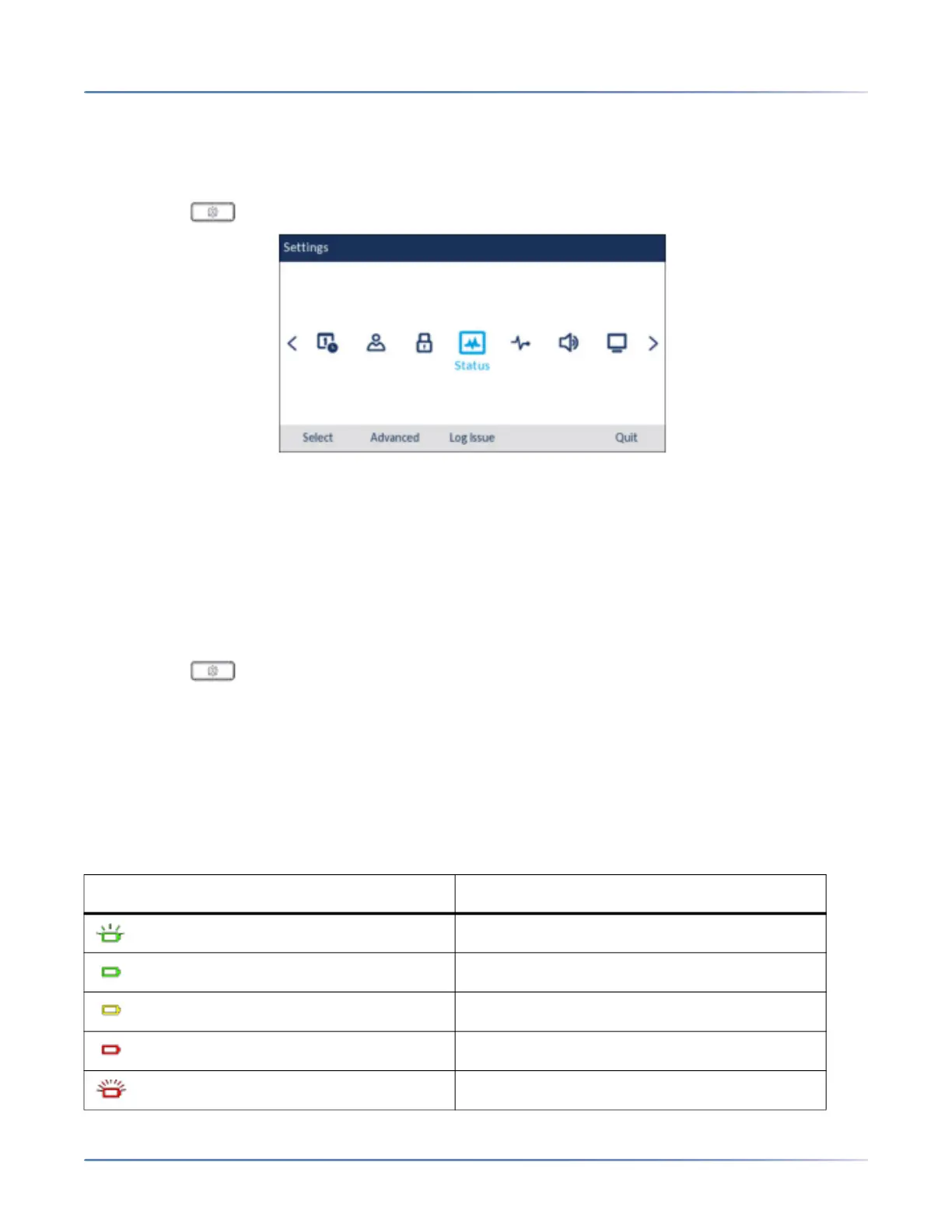 level, and Power/Bandwidth info of the Integrated DECT Headset is available on the screen.