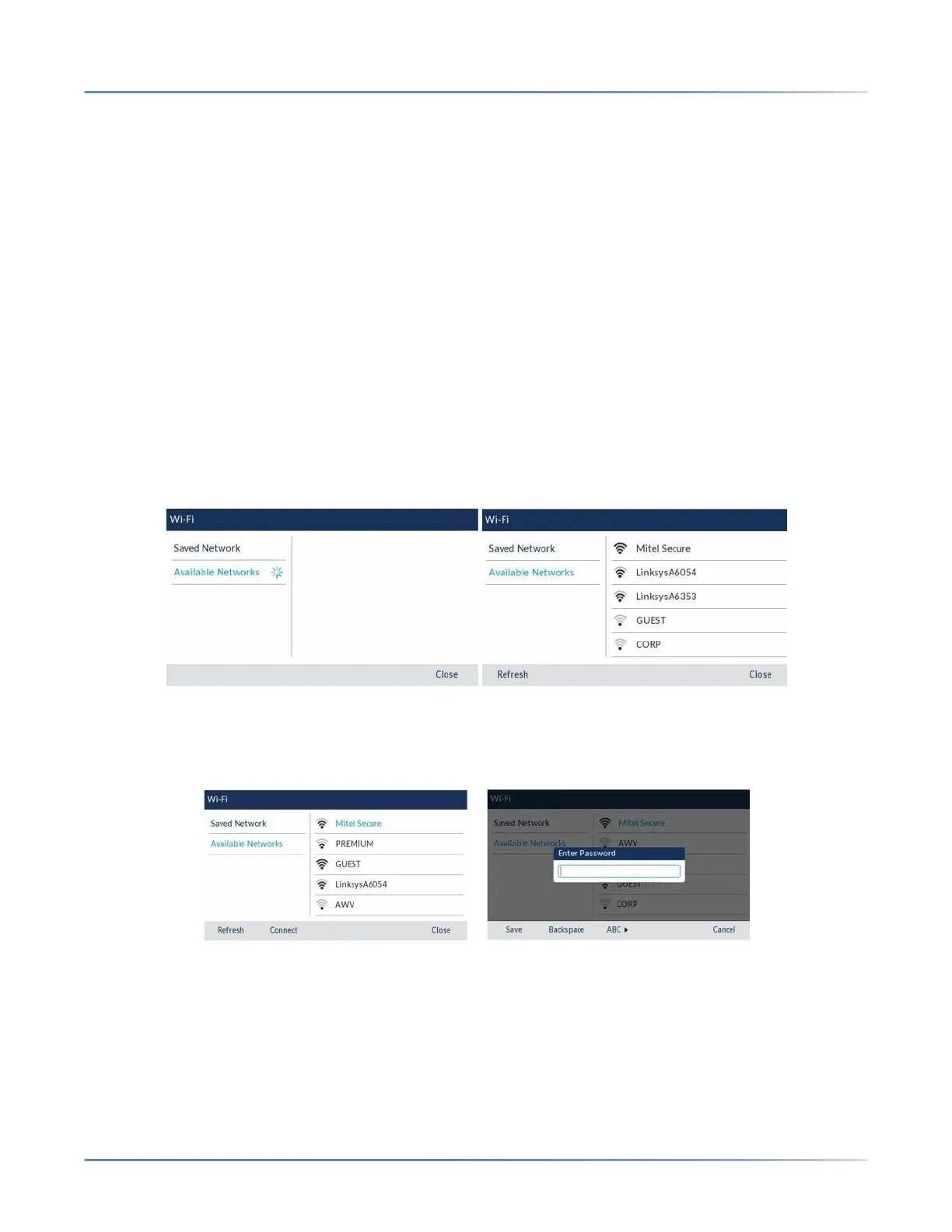 6. Select an SSID (that is, the name of a Wi-Fi network; for example, Mitel Secure) from Available