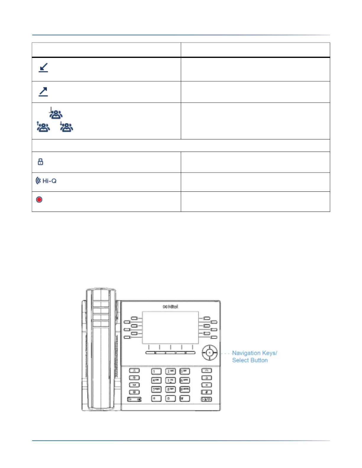 UI navigation is easily performed using the navigation keys located above the Received Callers List key.
