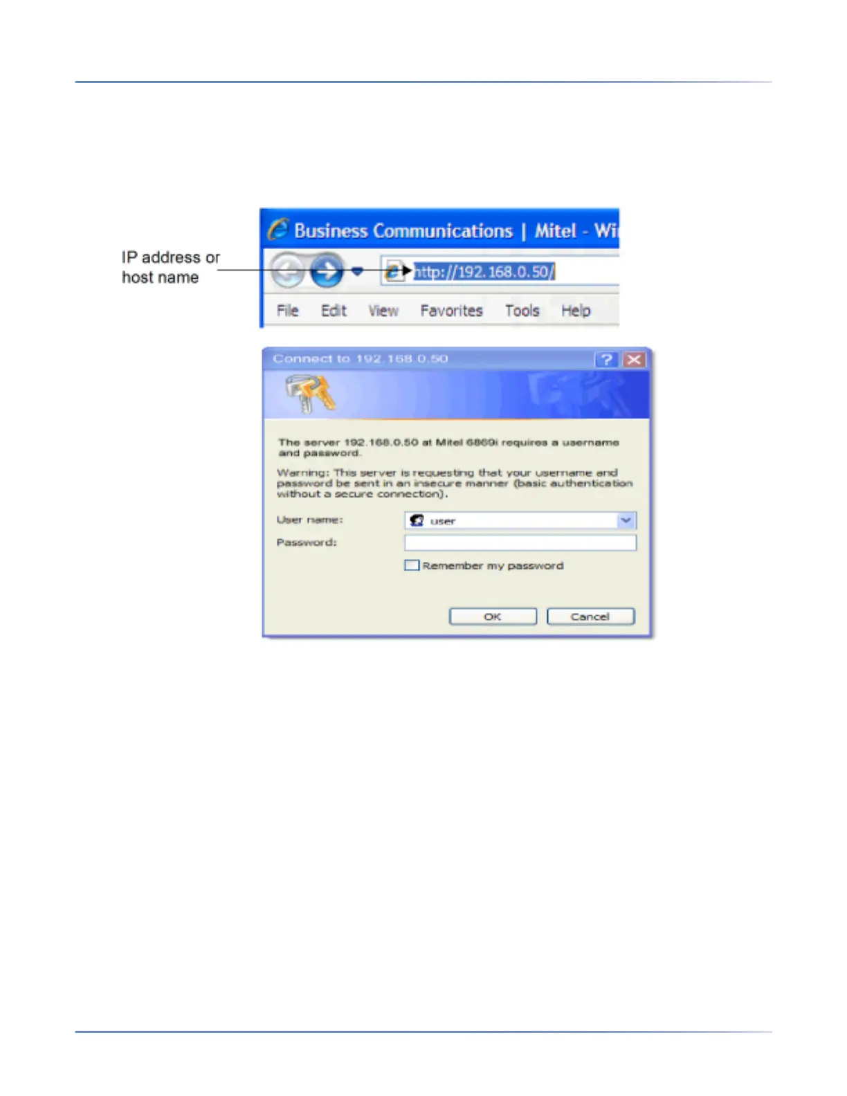1. Open your web browser, enter the phone’s IP address or host name into the address field and press