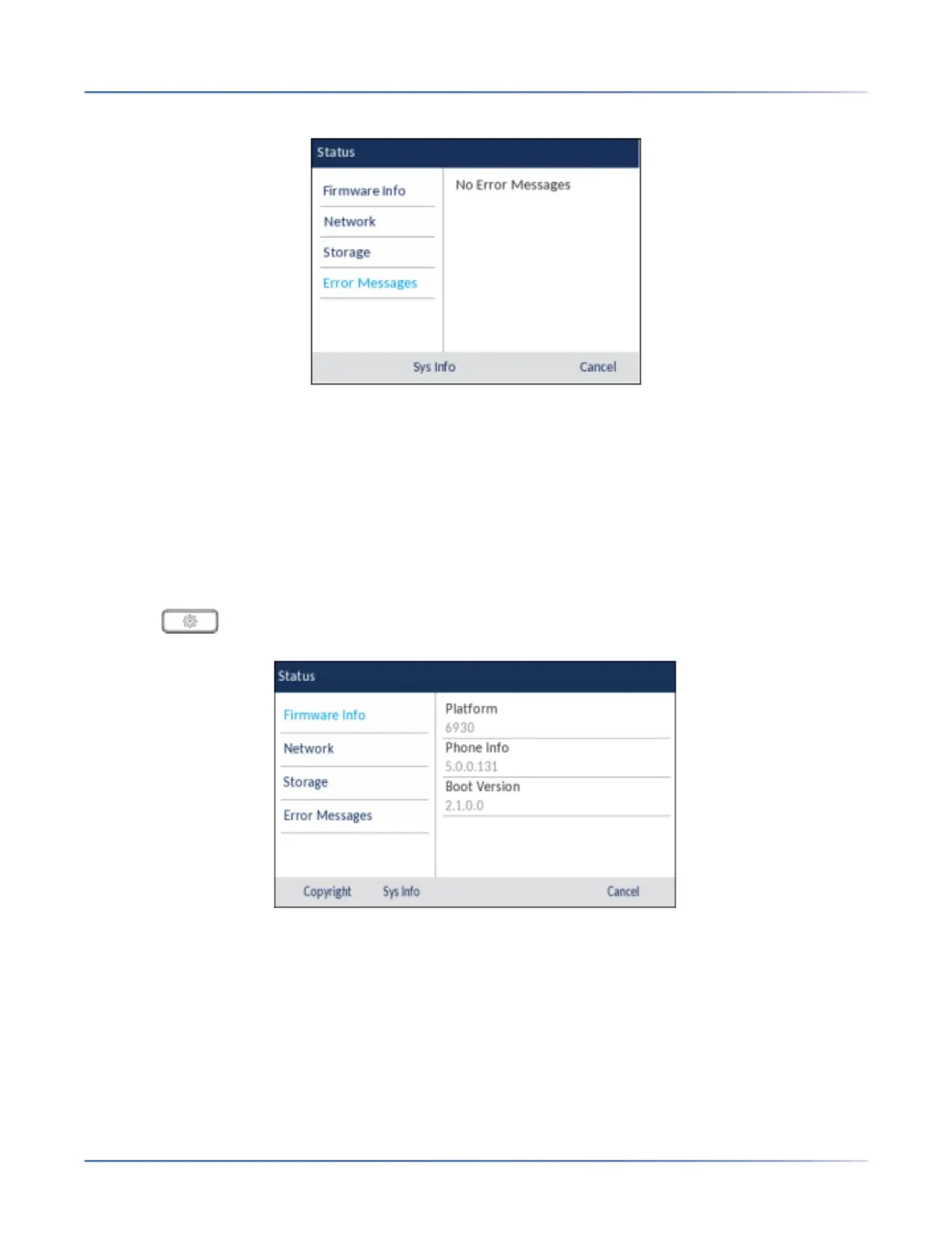 b. The Status menu may also contain a section called Accessory Info. This section details the