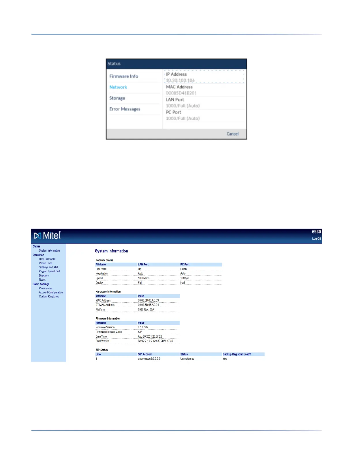 Use the following procedure to view the phone status through the Mitel Web UI.