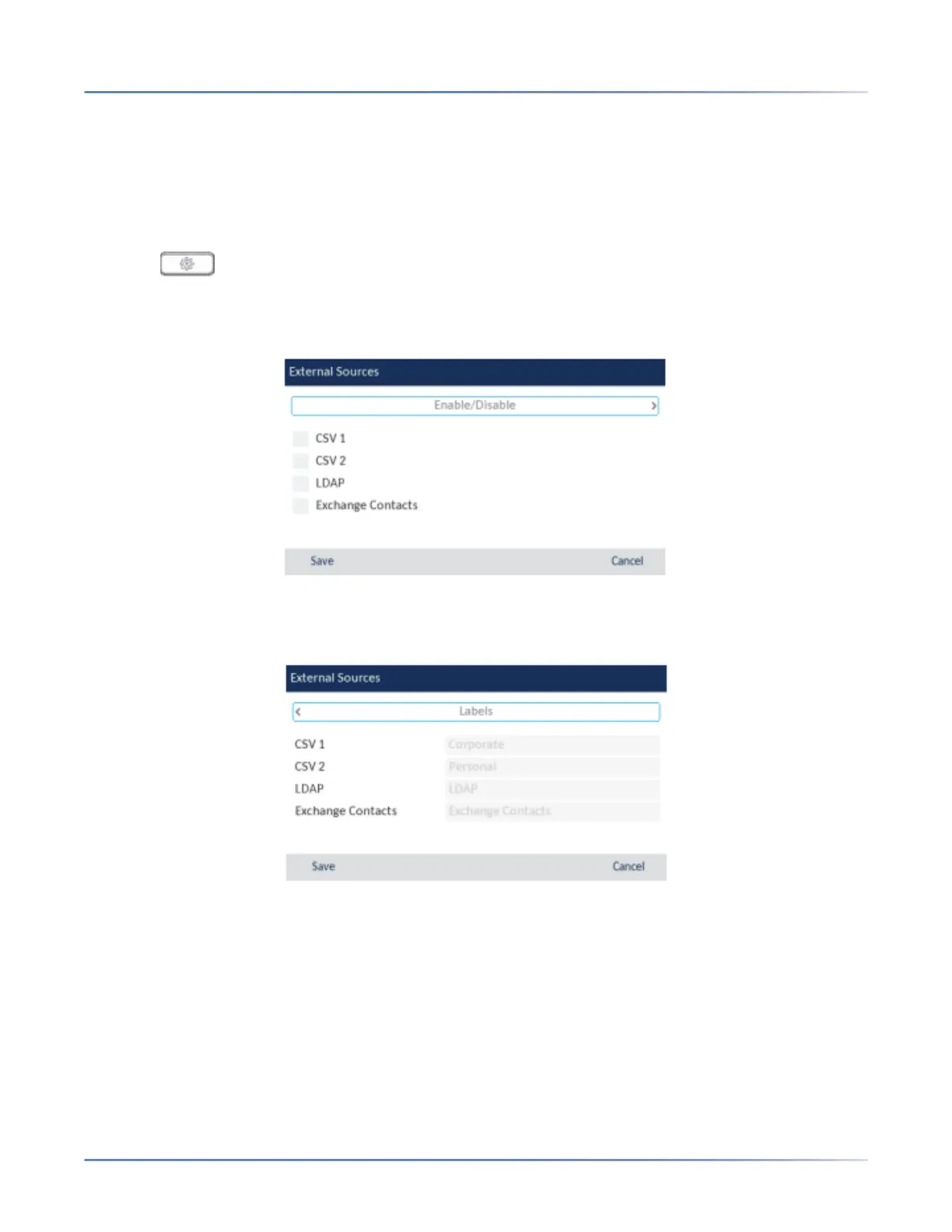 NOTE: Menu available only if external Directory sources have been configured by your Administrator.