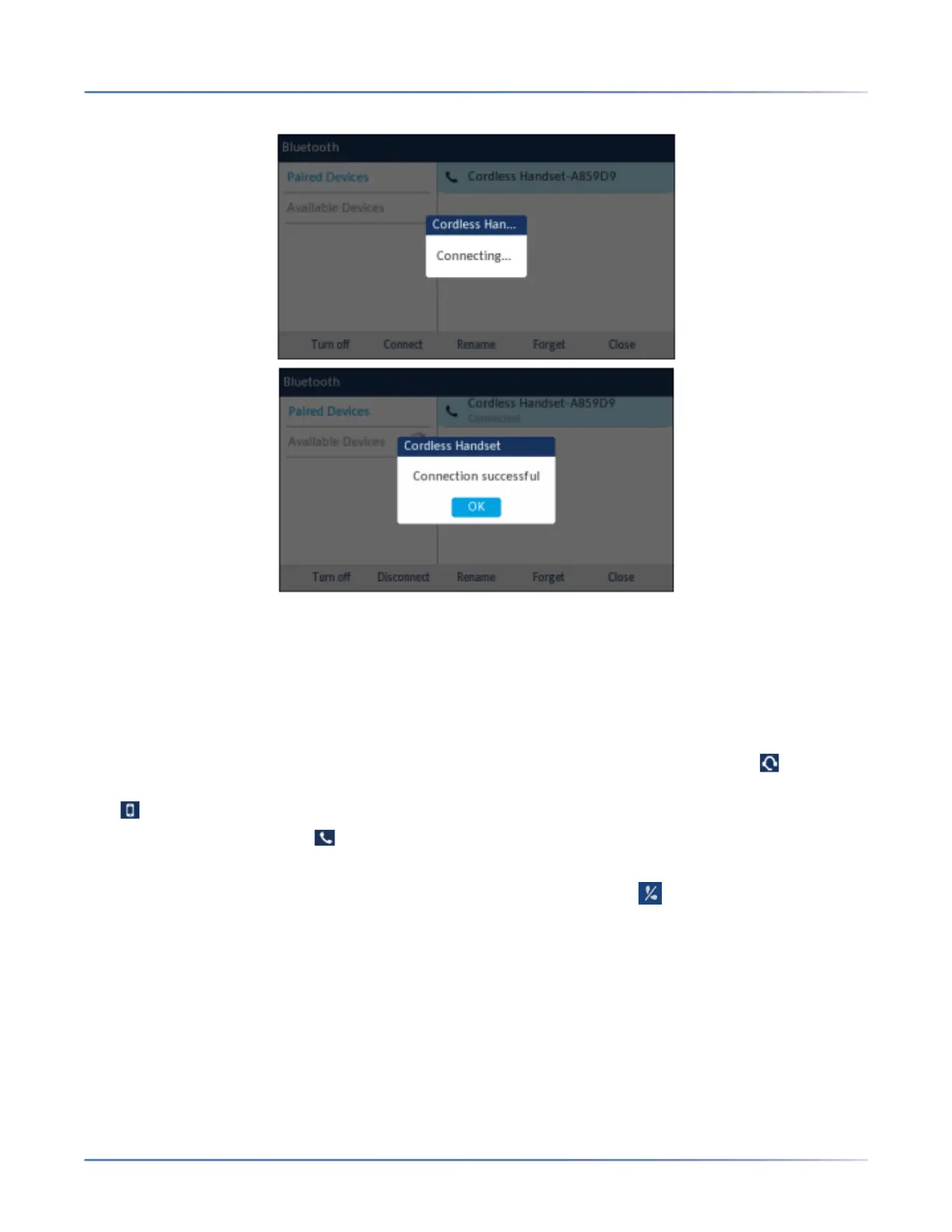 8. Press OK to acknowledge the successful connection.The connected Bluetooth device is added to the