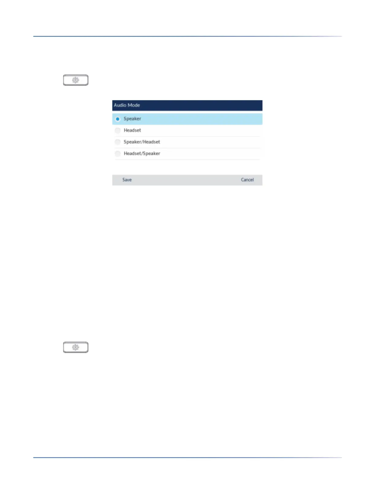 2. Navigate to the Audio > Audio Mode option and press the select button or Select softkey.