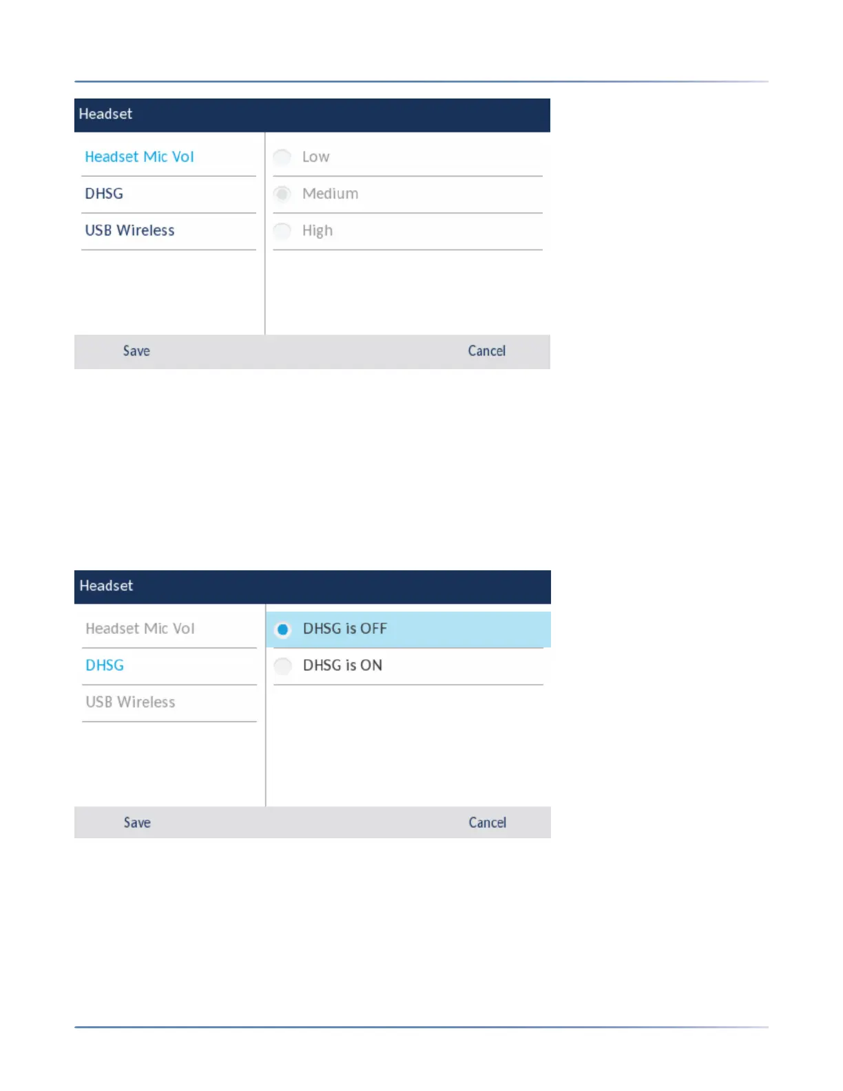 3. With Headset Mic Vol highlighted press the right navigation key to move to selection column.