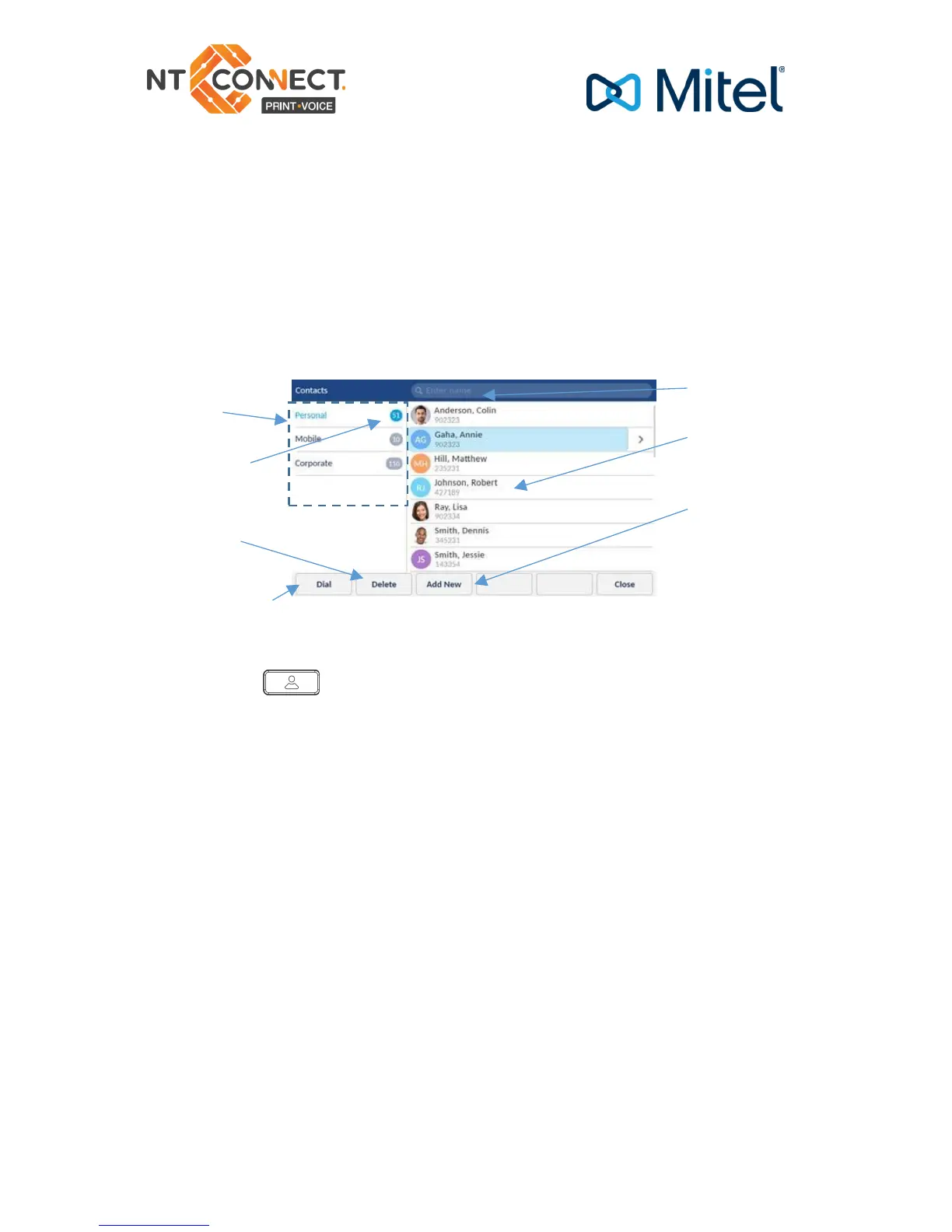 1. Press the key to access the Contacts application.