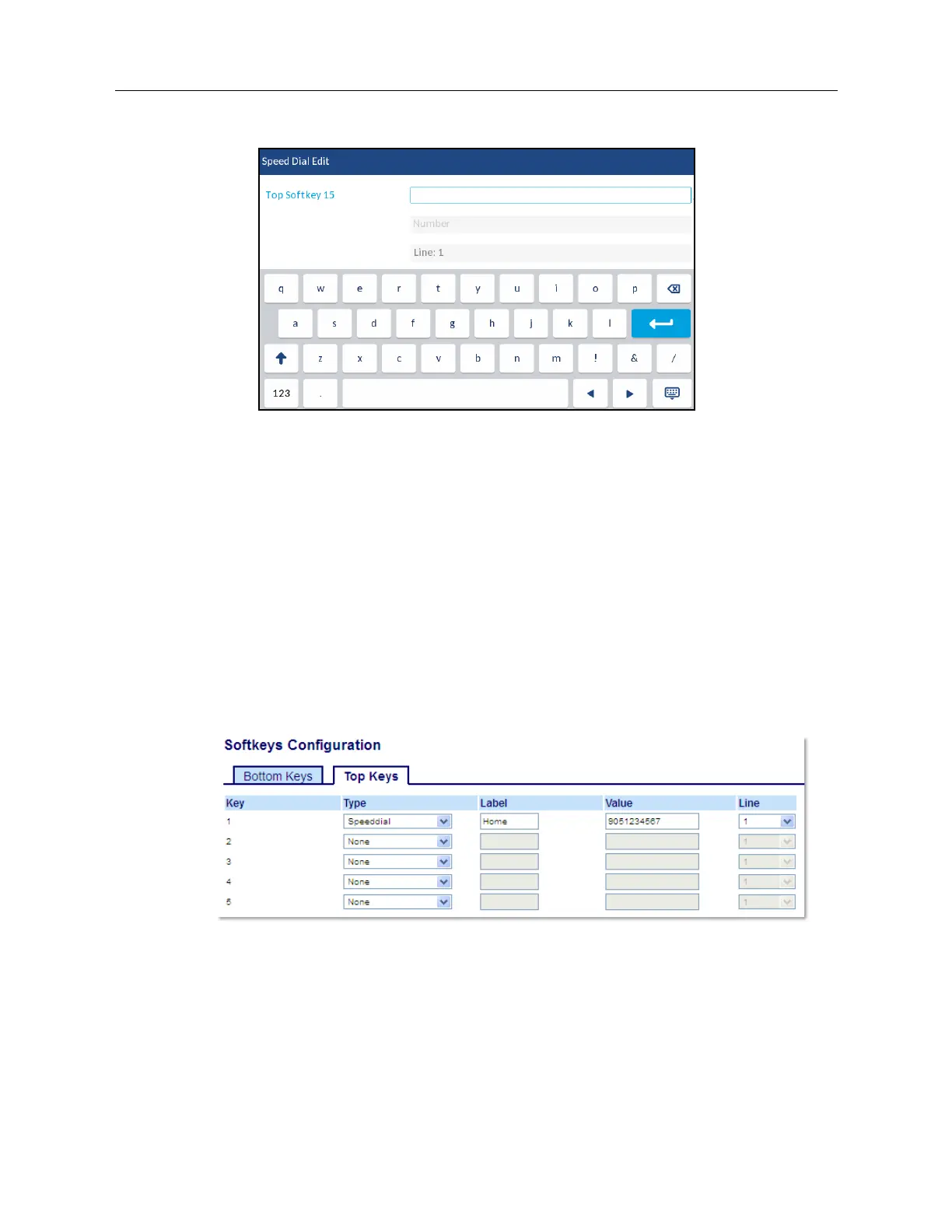 Press the desired type of keys you want to edit (e.g. Top Softkeys) and press the