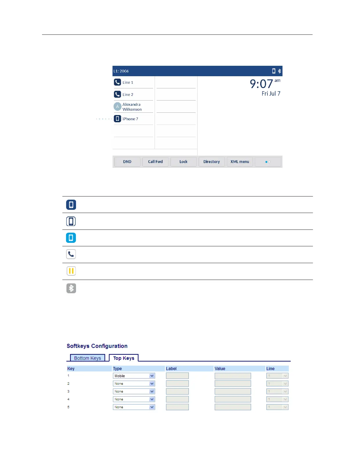 Indicates the mobile line is connected with a mobile phone and is idle.