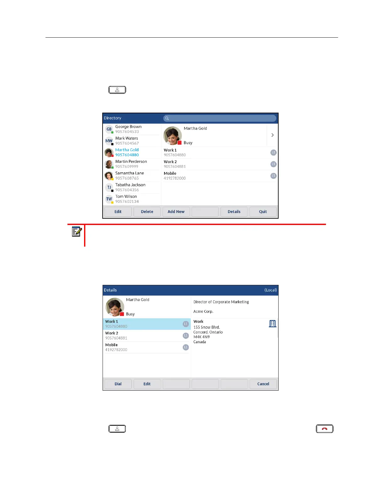 required) or swipe up and down on the address column to view the work, home, and e-mail