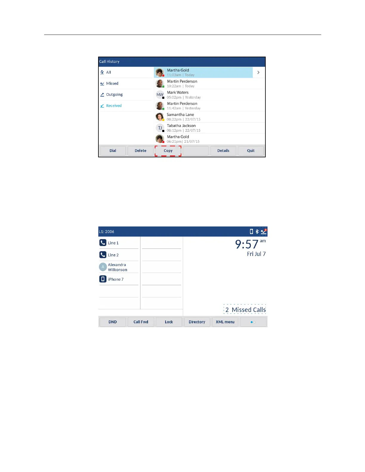 The IP phone has a missed calls indicator and icon that increments the number of missed calls to