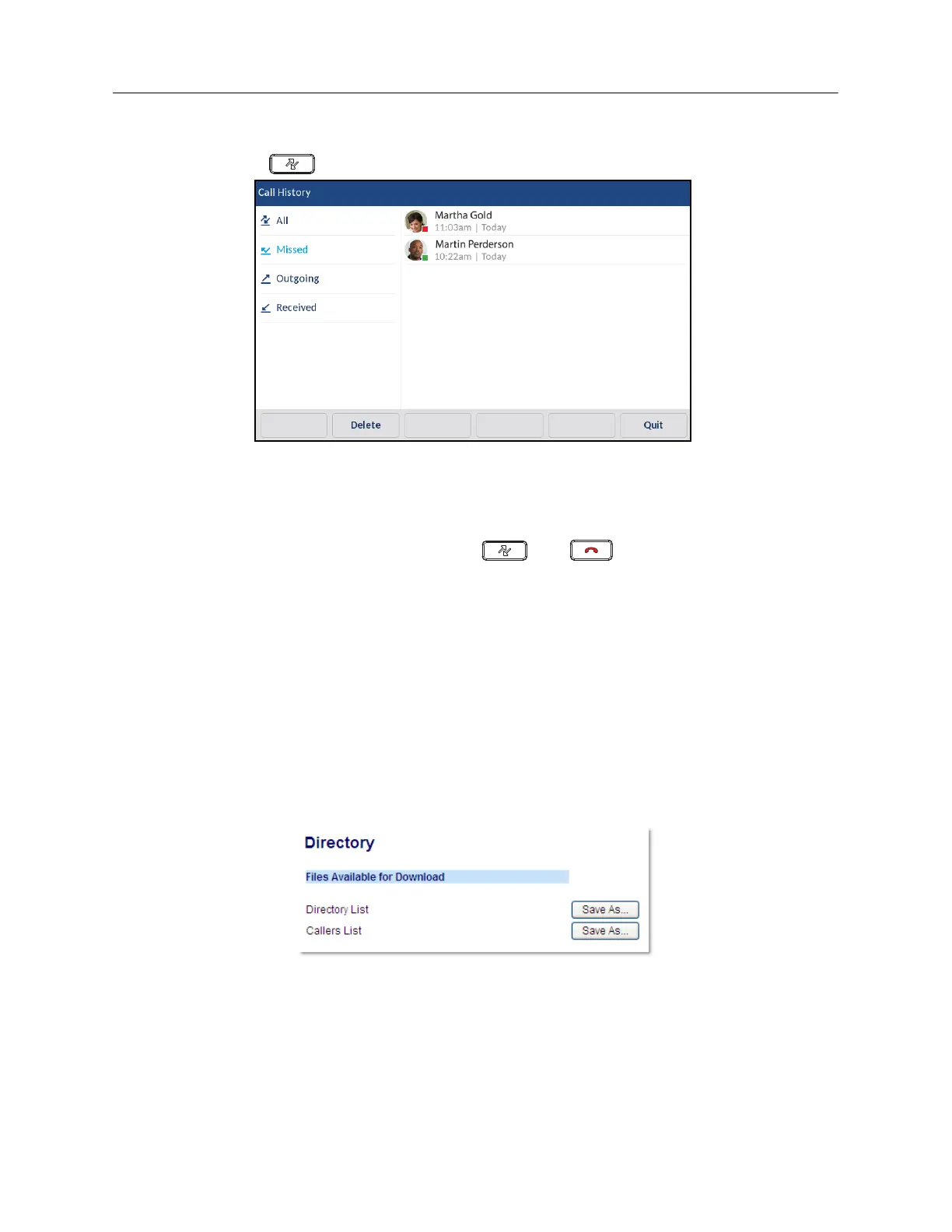 Swipe up and down to scroll through the entries in the Missed Callers List and press an entry.