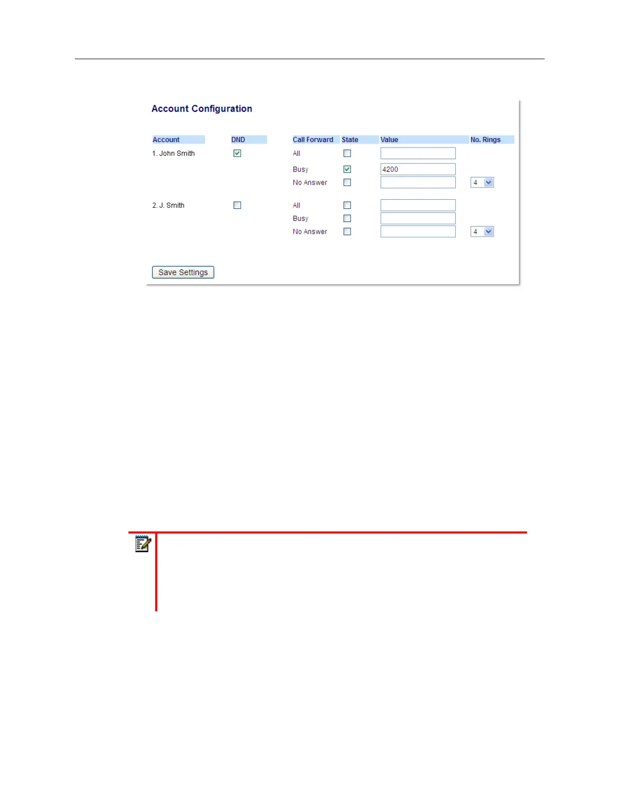For each account, enable the Call Forward state by placing a check mark in one or more of the