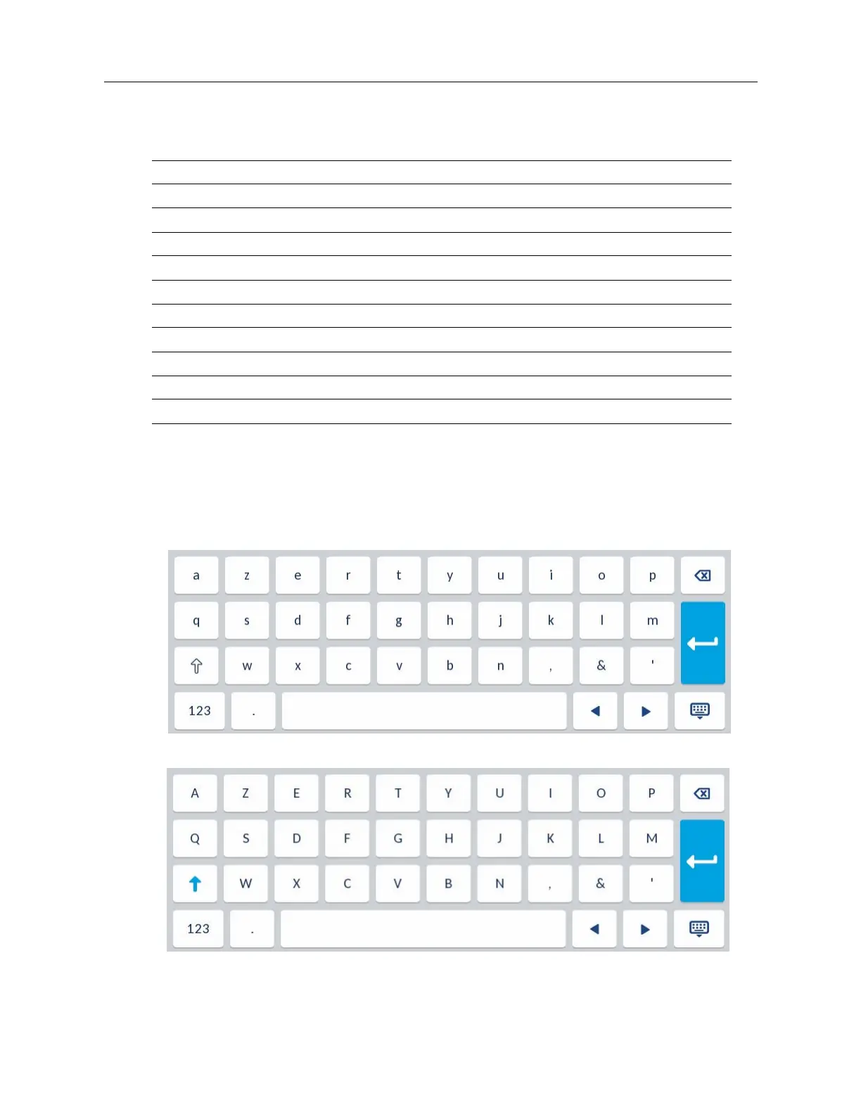 When the phone’s input language is defined as French, the following keyboard layouts are used: