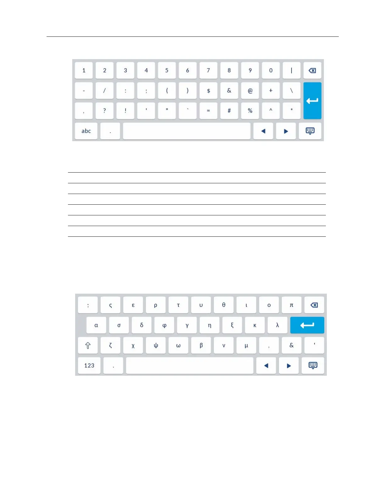 When the phone’s input language is configured as Greek, the following keyboard layouts are used: