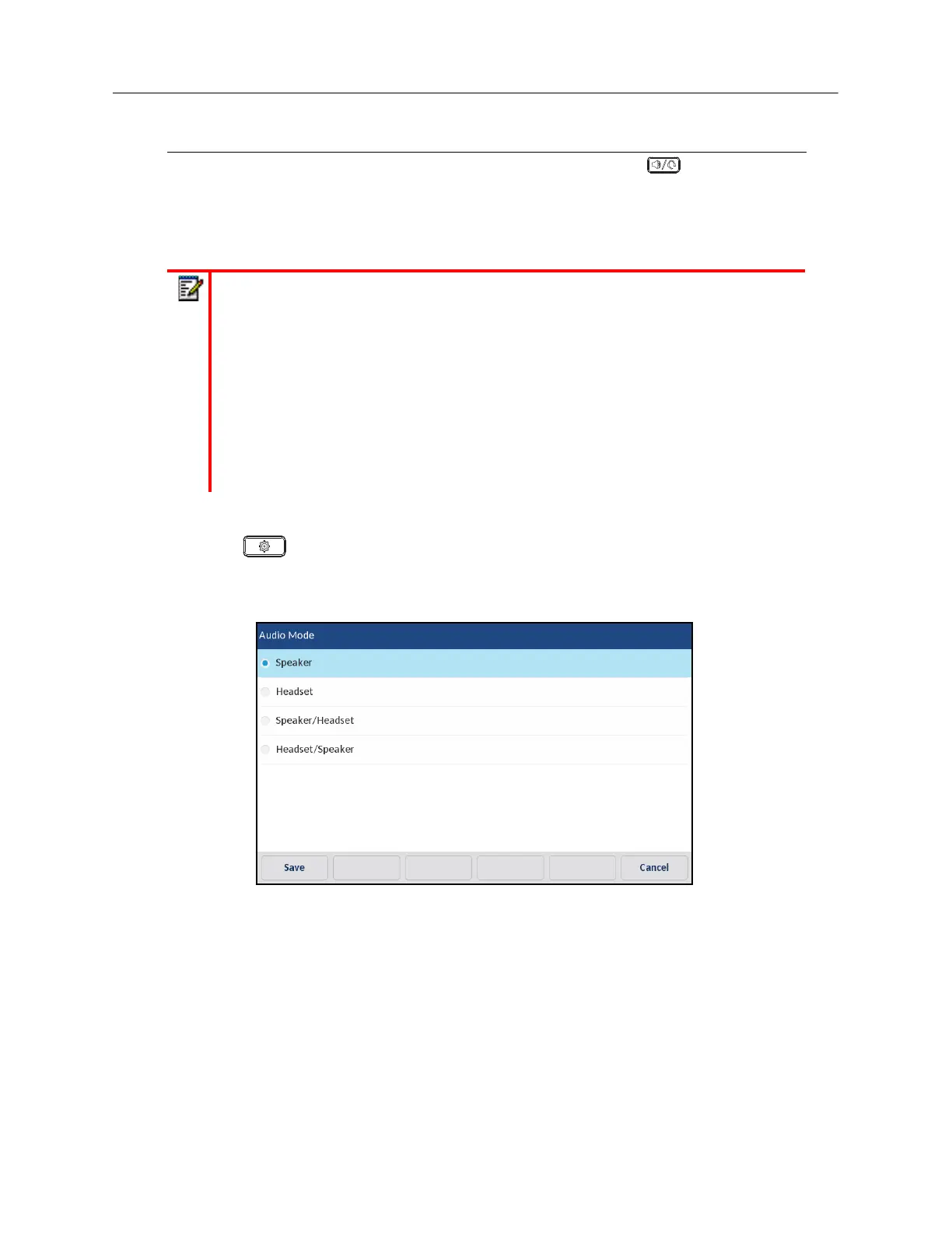 Headset/Speaker Incoming calls are sent to the headset first when the button is pressed.