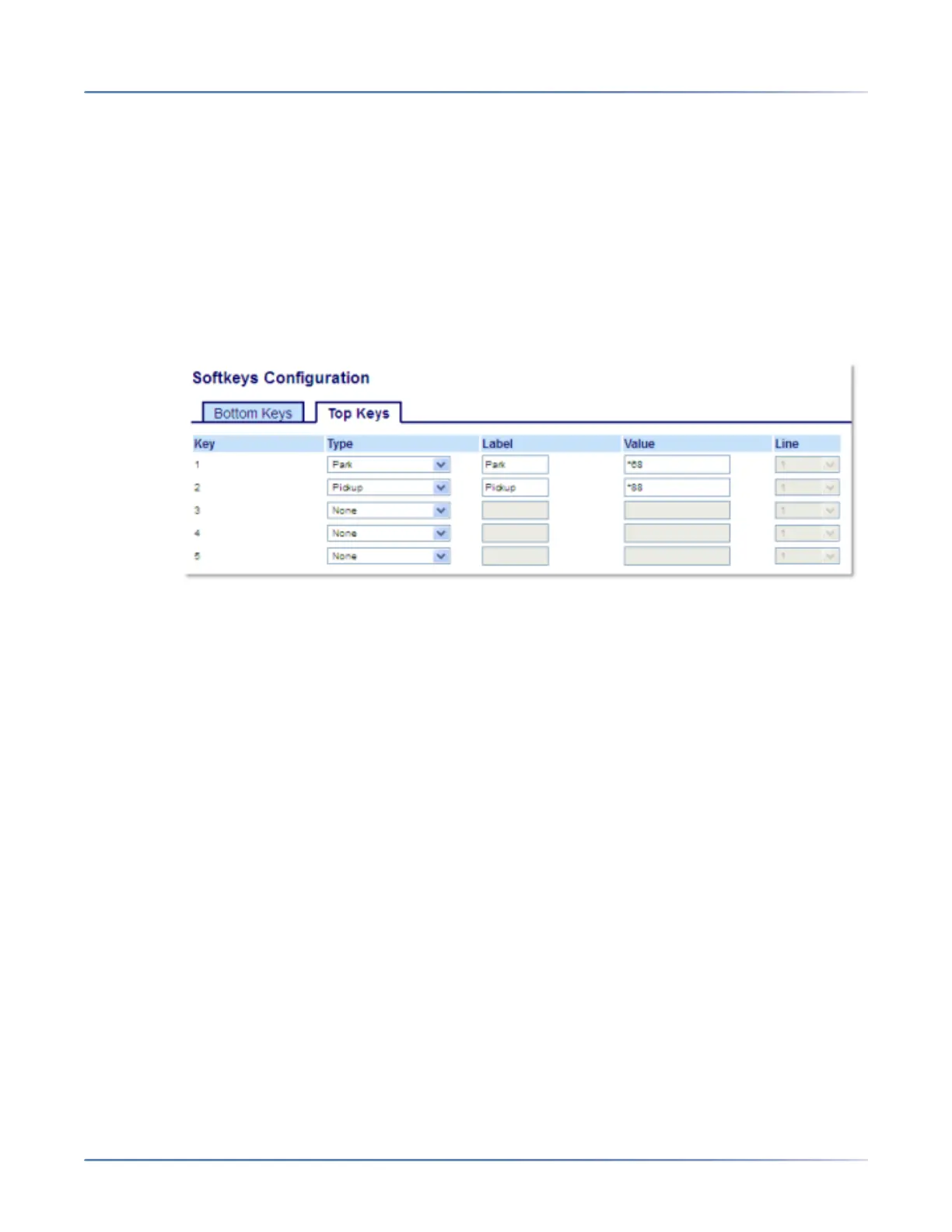 Administrators can configure thePark and Pickup keys for any line using the configuration files or the